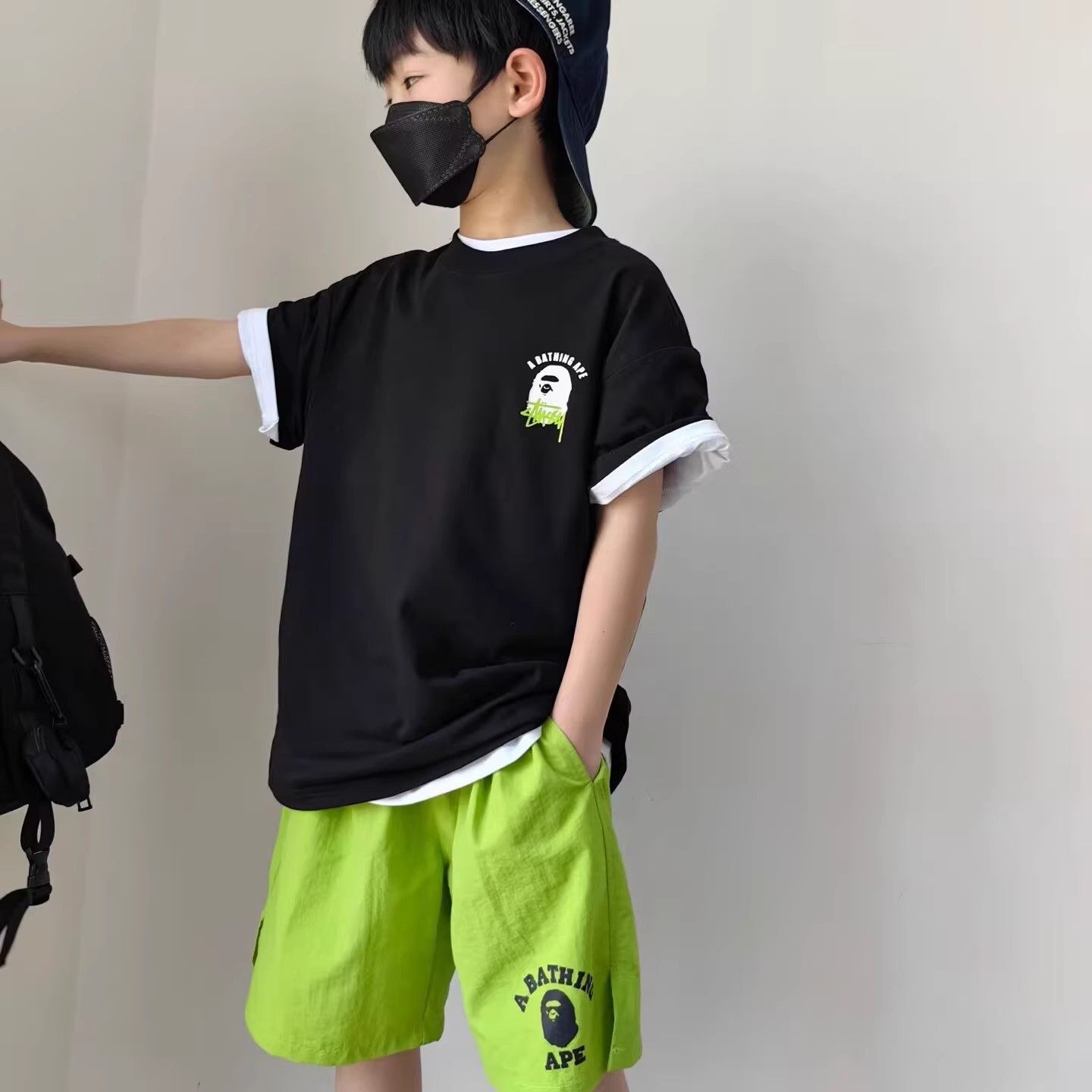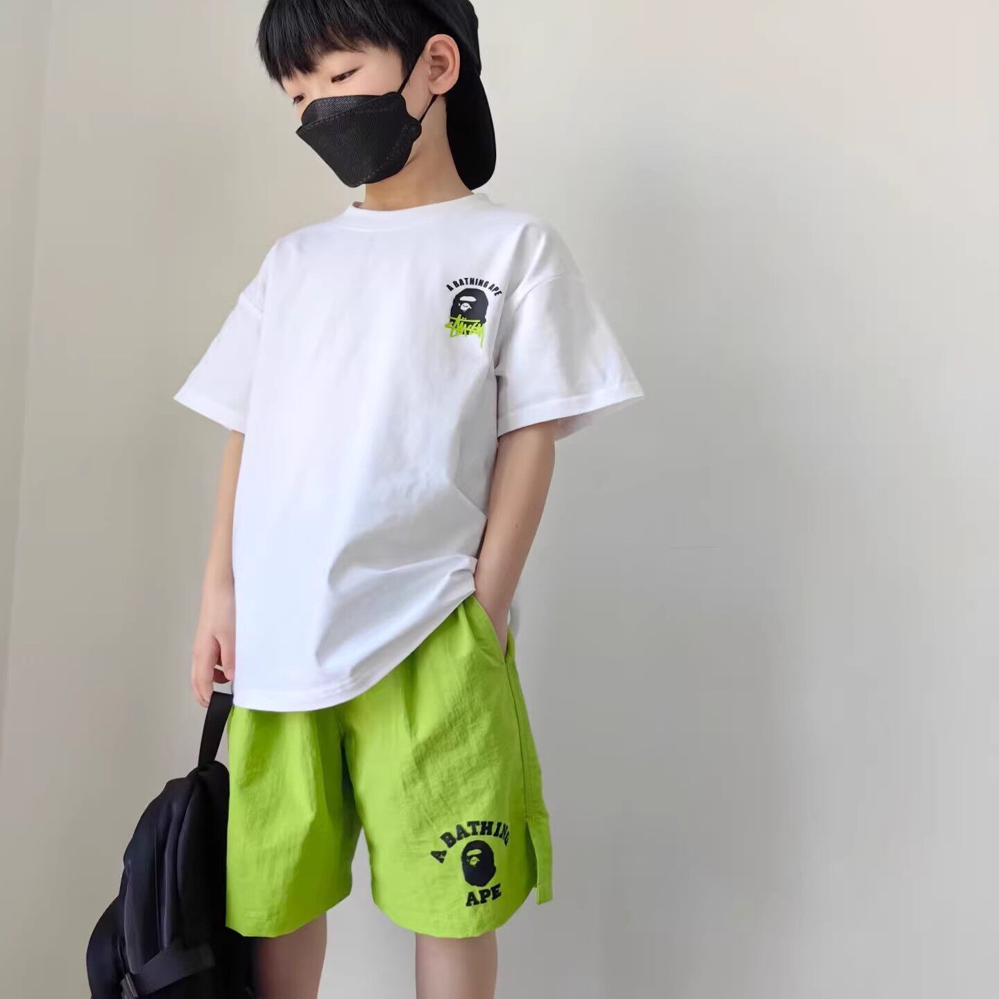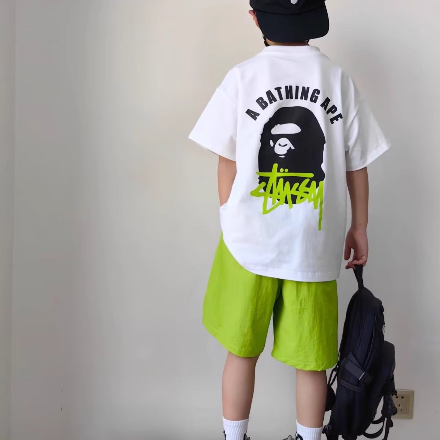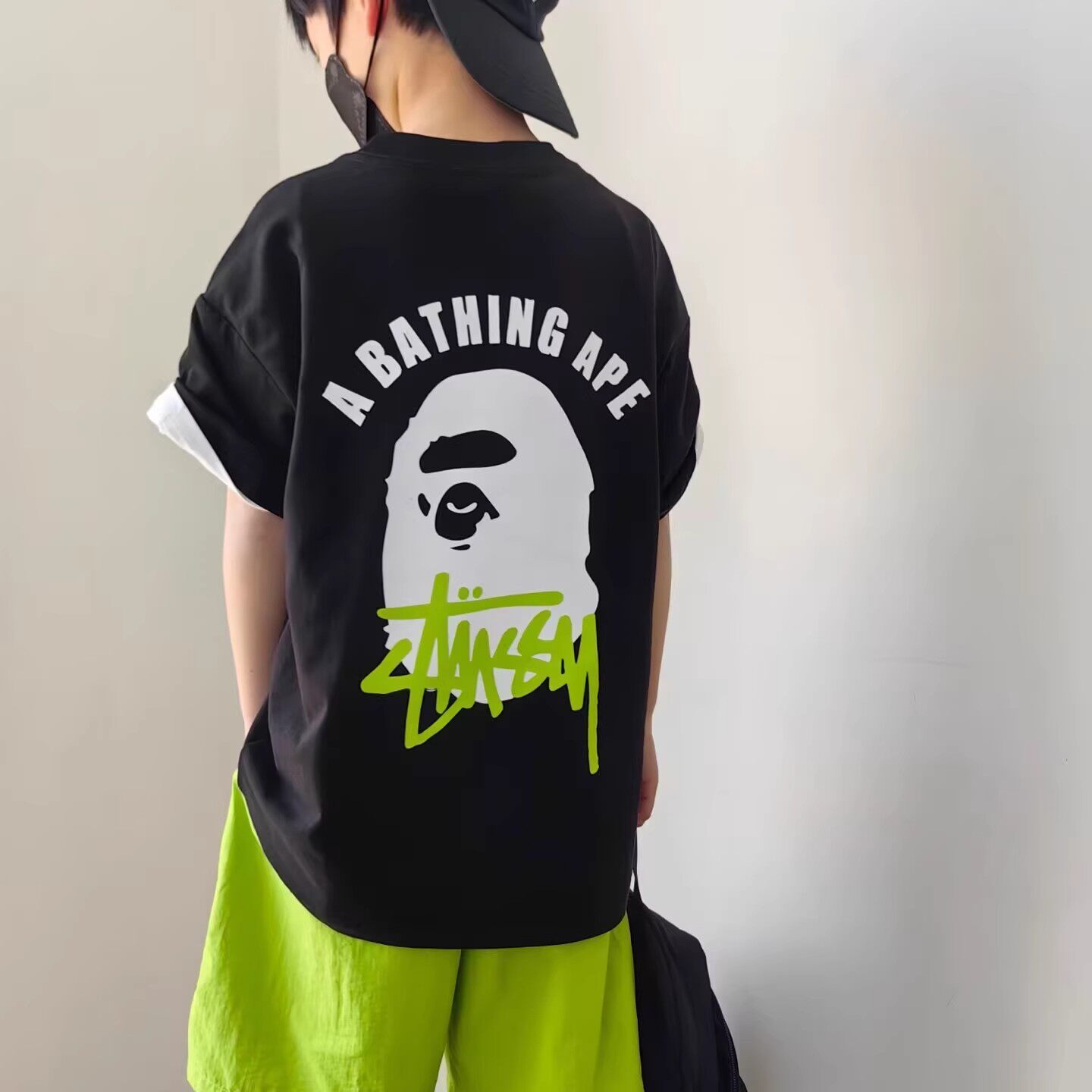 短袖BAPE纯棉STU儿童潮牌t恤夏男女联名猿人头SHARKAPE洋气亲子装