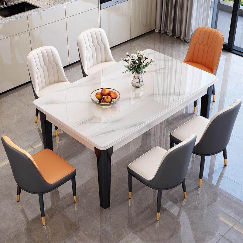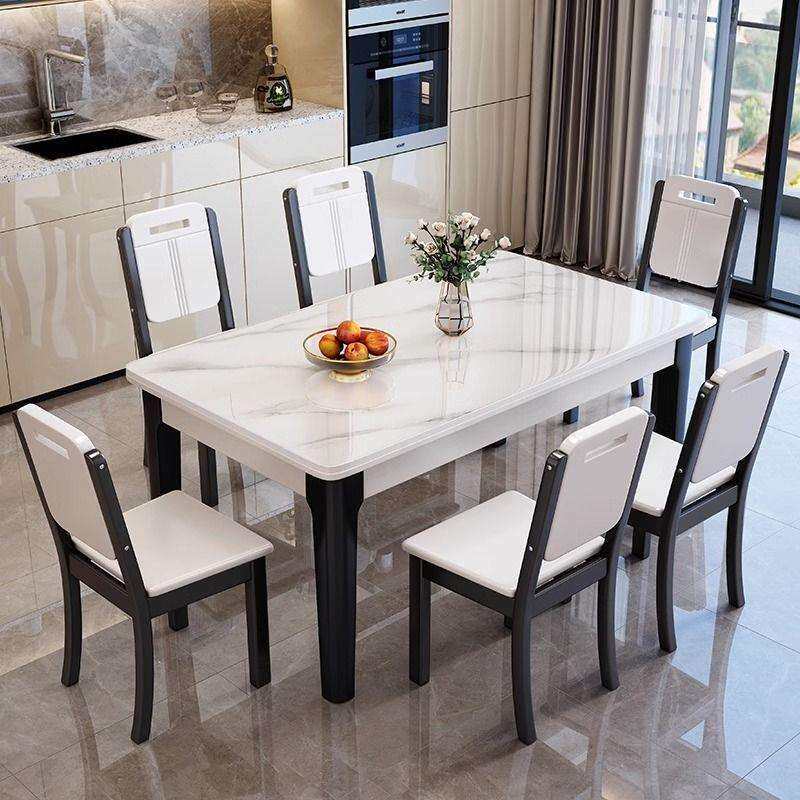 欧式实木岩板餐桌椅小户型简约组合带餐椅一体餐桌家用隐形餐桌