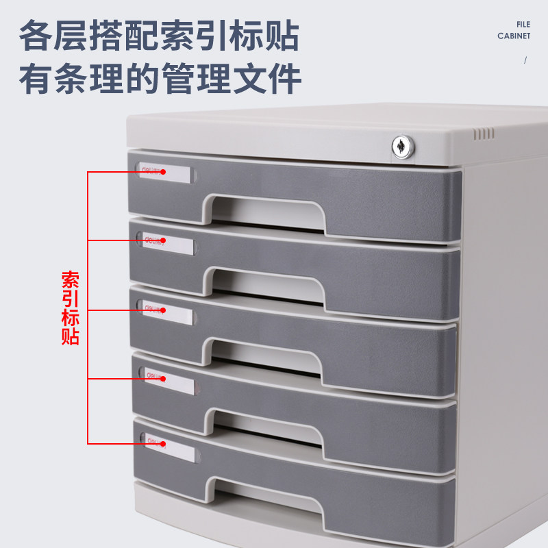 得力8855文件柜带锁5层多层手拉办公桌面A4资料整理柜带索引标签