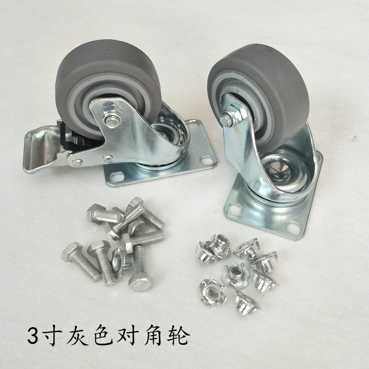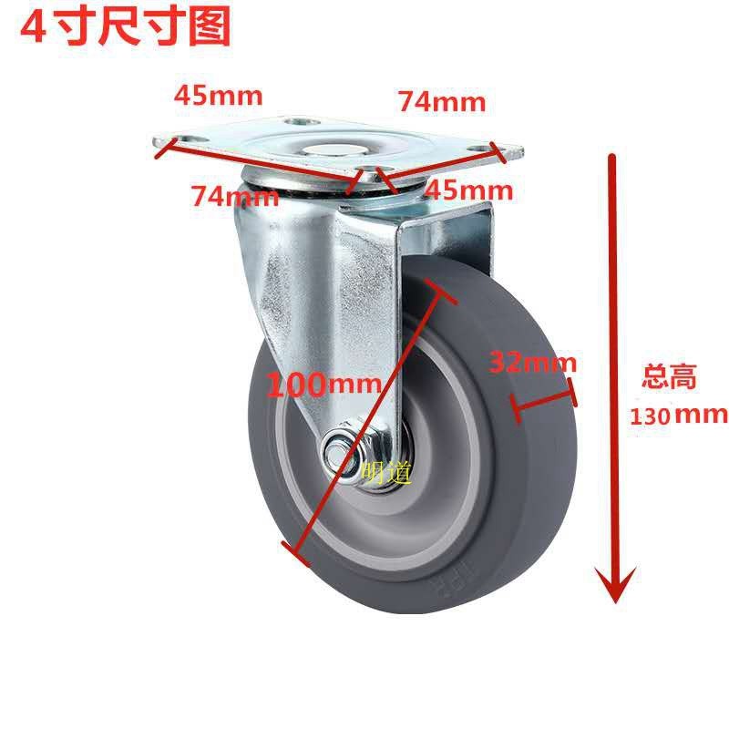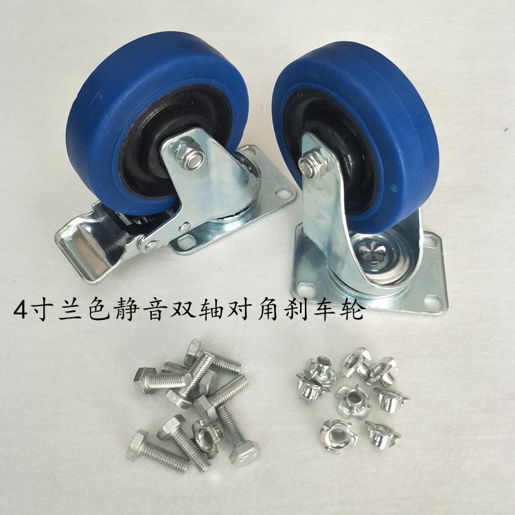 2寸3寸4寸聚氨酯双轴承万向脚轮货架轱辘静音万向刹车轮航空箱轮