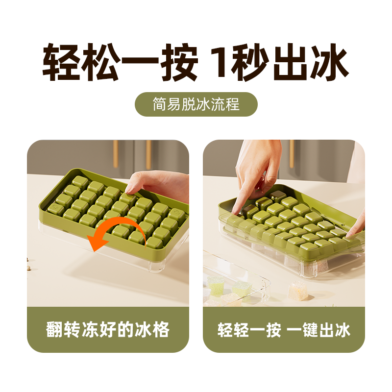 轻轻按压|一秒出冰|食品级材质|带盖可叠加