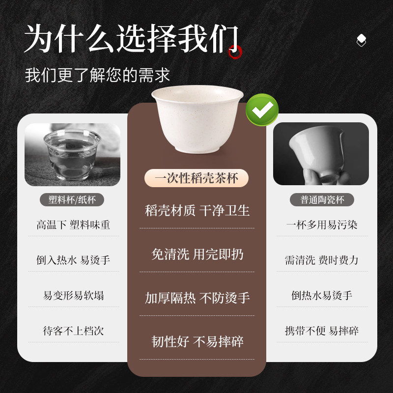 一次性功夫茶杯加厚食品级稻壳小号便携喝茶品茗杯待客茶具高级感