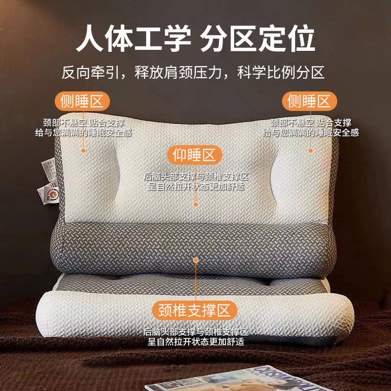 爆款分区助睡眠反牵引枕颈椎枕头枕芯针织家用一对学生一只装支撑