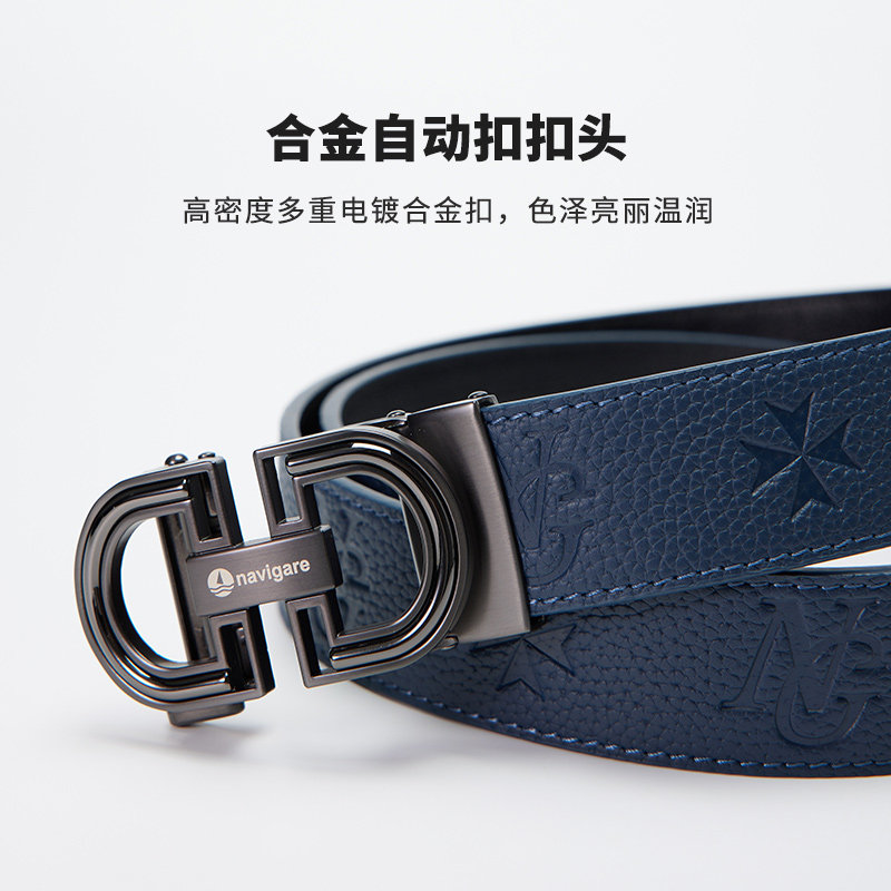 navigare意大利小帆船鳄鱼纹皮带男士真皮自动扣腰带商务休闲裤带