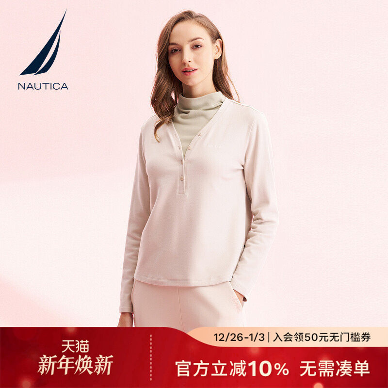 NAUTICA/诺帝卡女装春秋款双面刷毛柔软舒适半开襟T恤44TO01