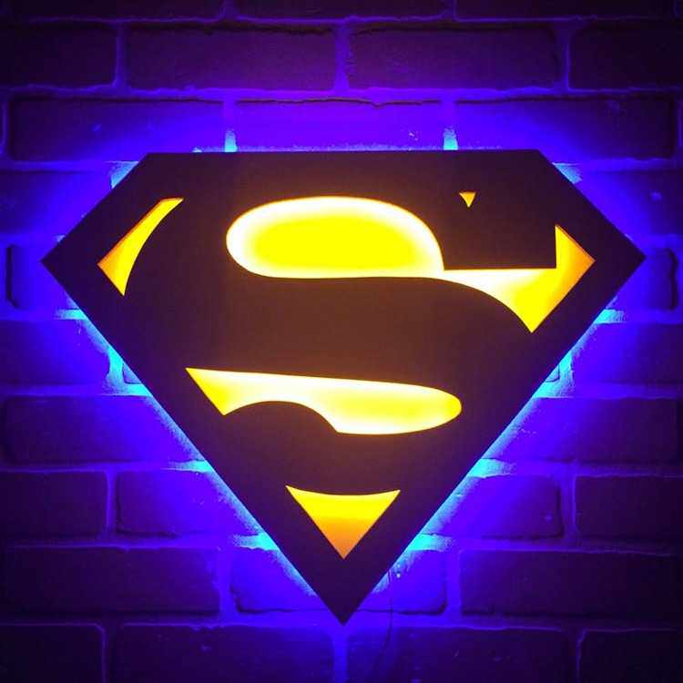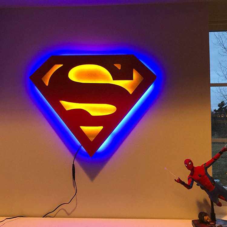 跨境爆款 正义联盟超人LED夜灯发光壁灯家饰床头灯超级英雄标志灯