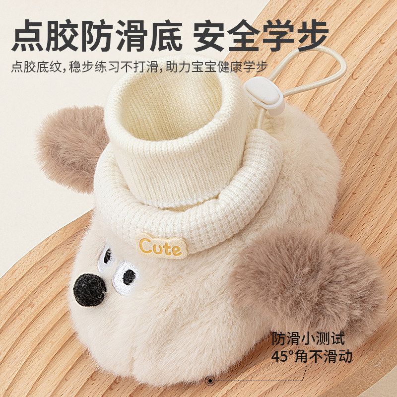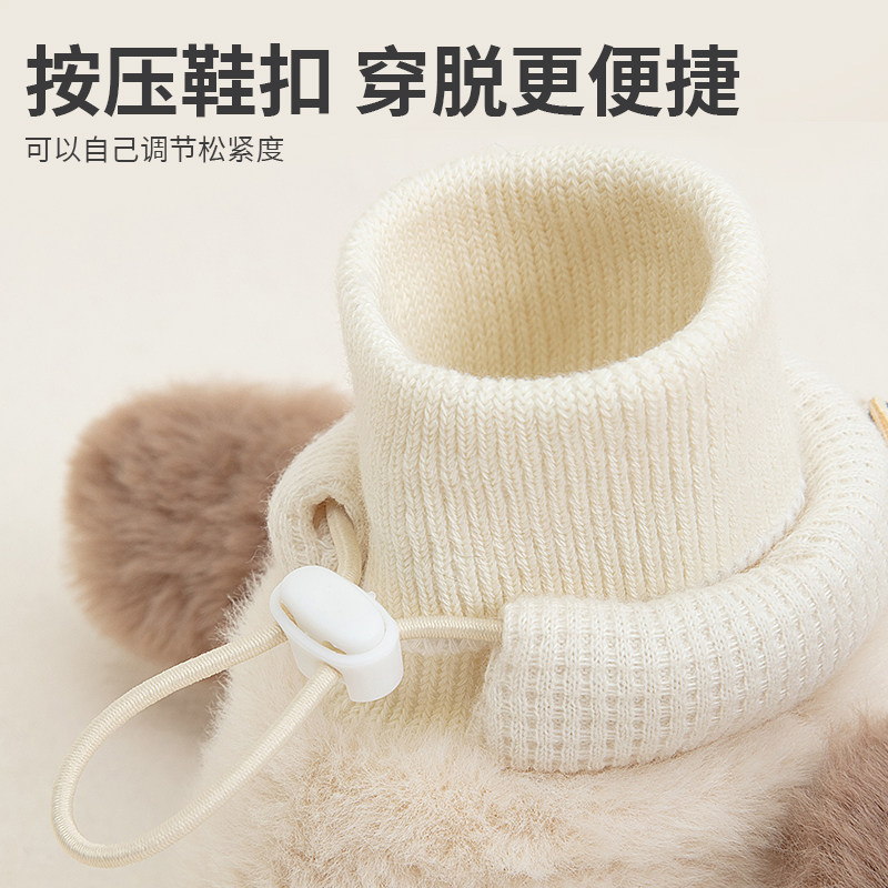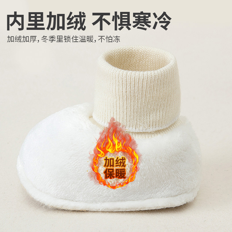 婧麒婴儿鞋子冬季加绒保暖女宝袜鞋不掉地板鞋新生儿软底防滑棉鞋