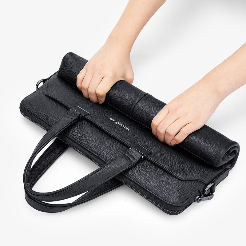 休闲简约 柔软头层牛皮 可放14英寸电脑