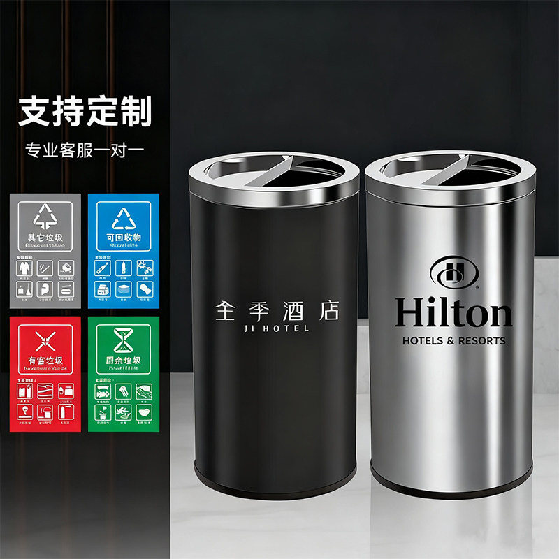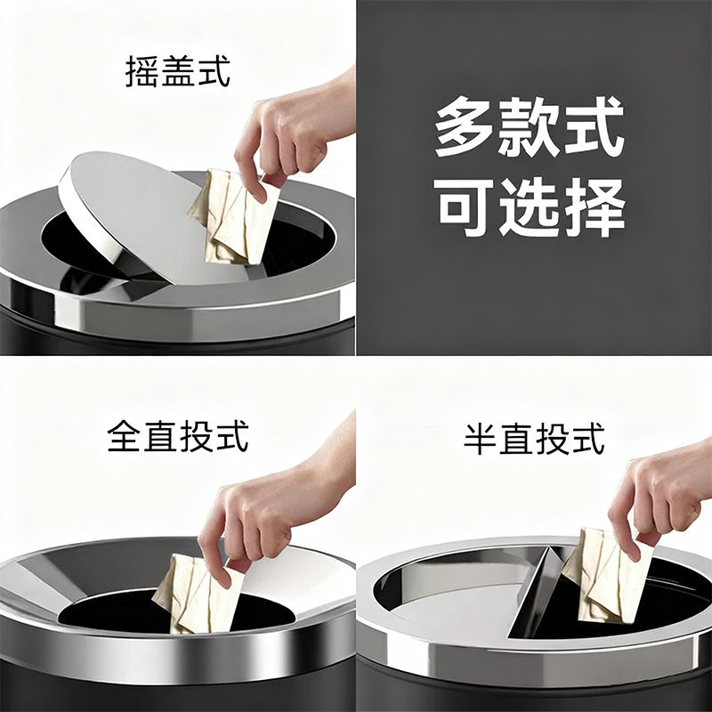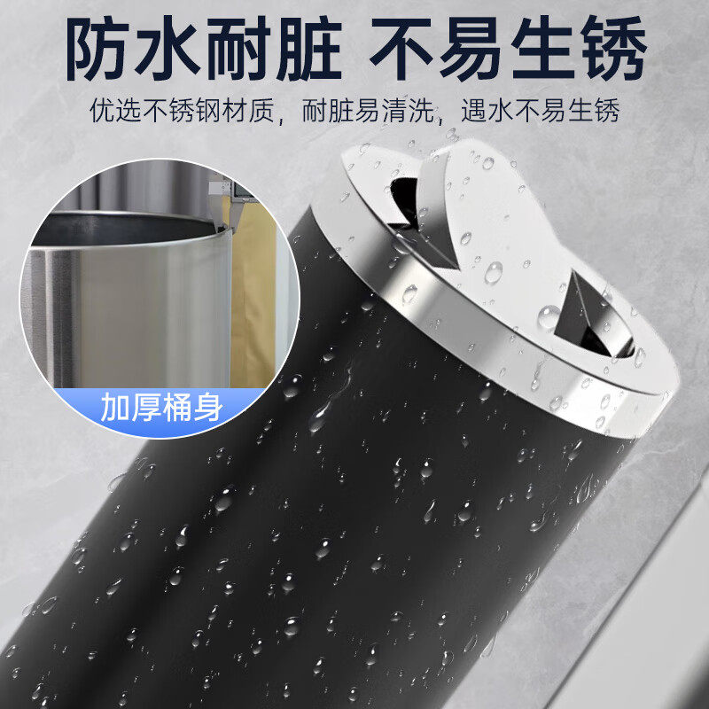 港式桶不锈钢垃圾桶商用酒店大堂立式翻盖圆形座地果皮桶商场大号