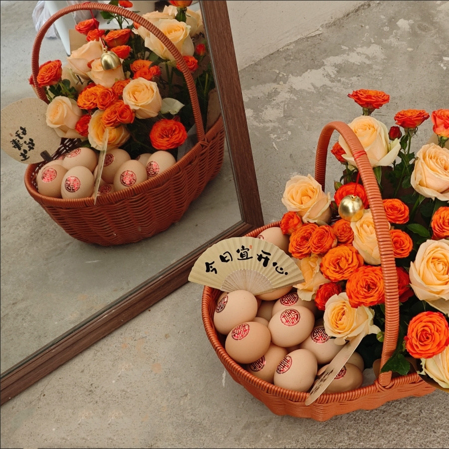 月子鸡蛋花篮礼物平安喜乐高档材料包月子篮手提花篮材料包手拎篮