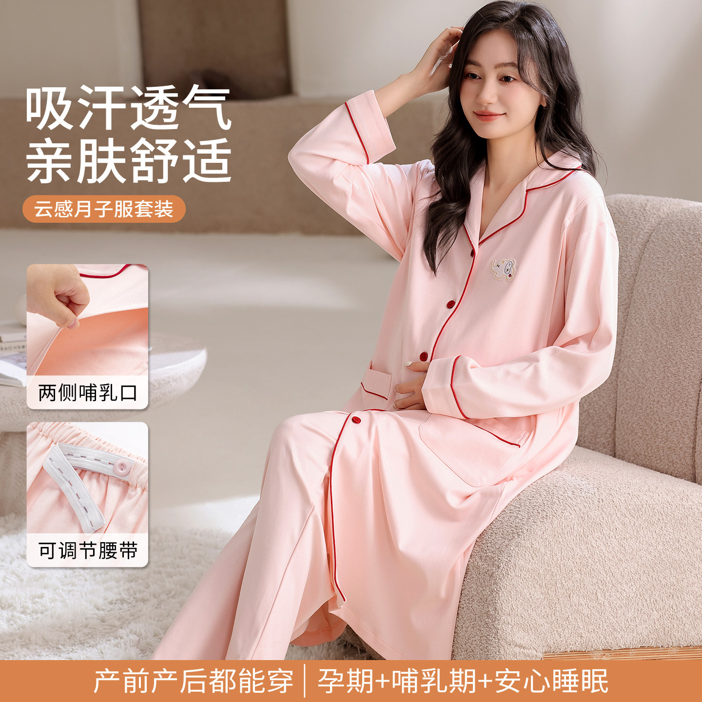 孕妇待产裙月子服睡衣女春秋纯棉产前产后套装产妇哺乳喂奶家居服
