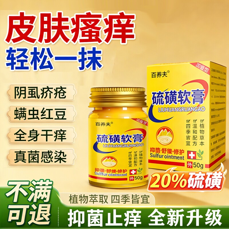 50g百养夫20%硫磺软膏虱虫旗舰店疥复方外用抑菌止痒螨虫护理正品
