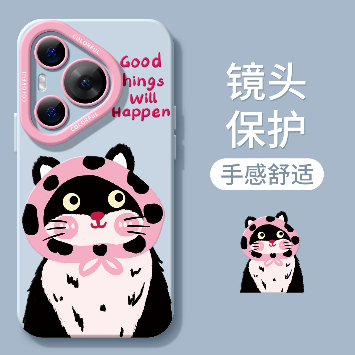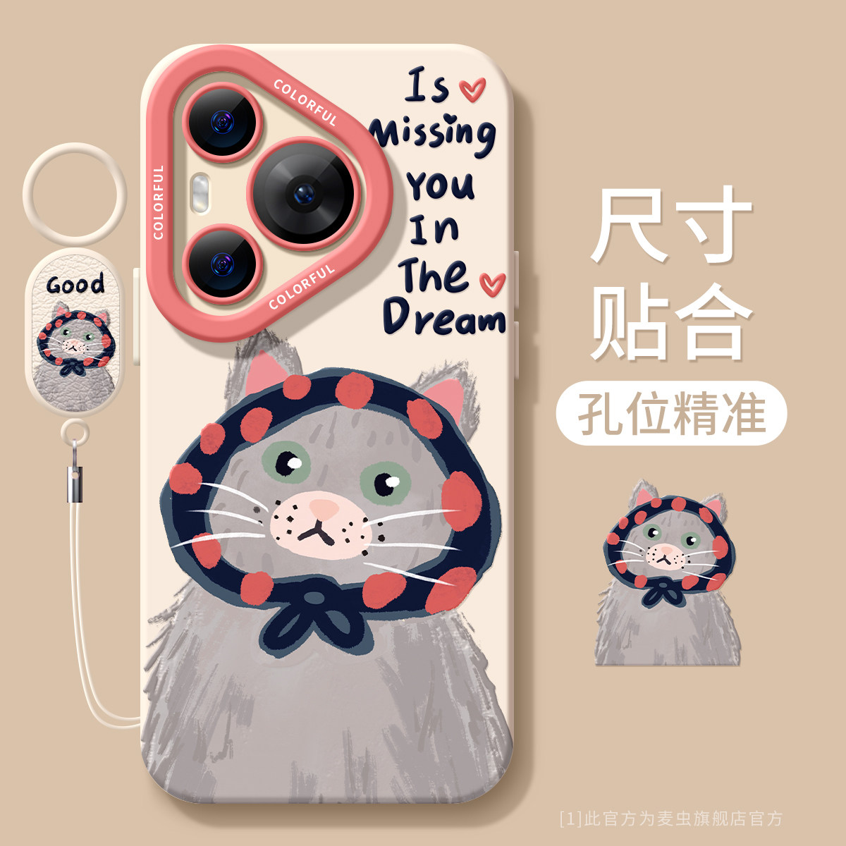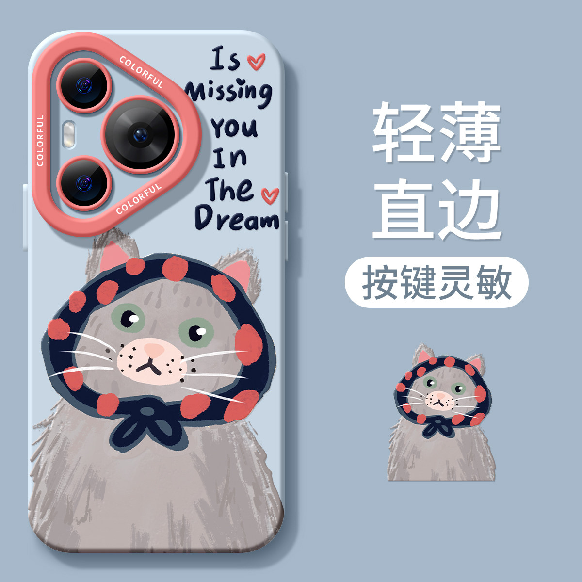 适用华为Pura80手机壳女款p70pro保护套新款p70e硅胶防摔p40pro全包磨砂60pro+头巾个性p70卡通猫咪art软外壳