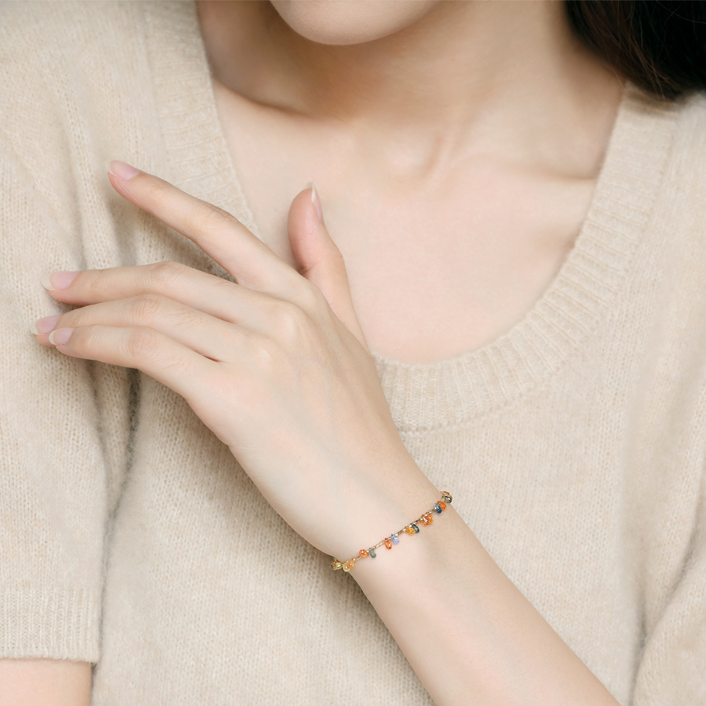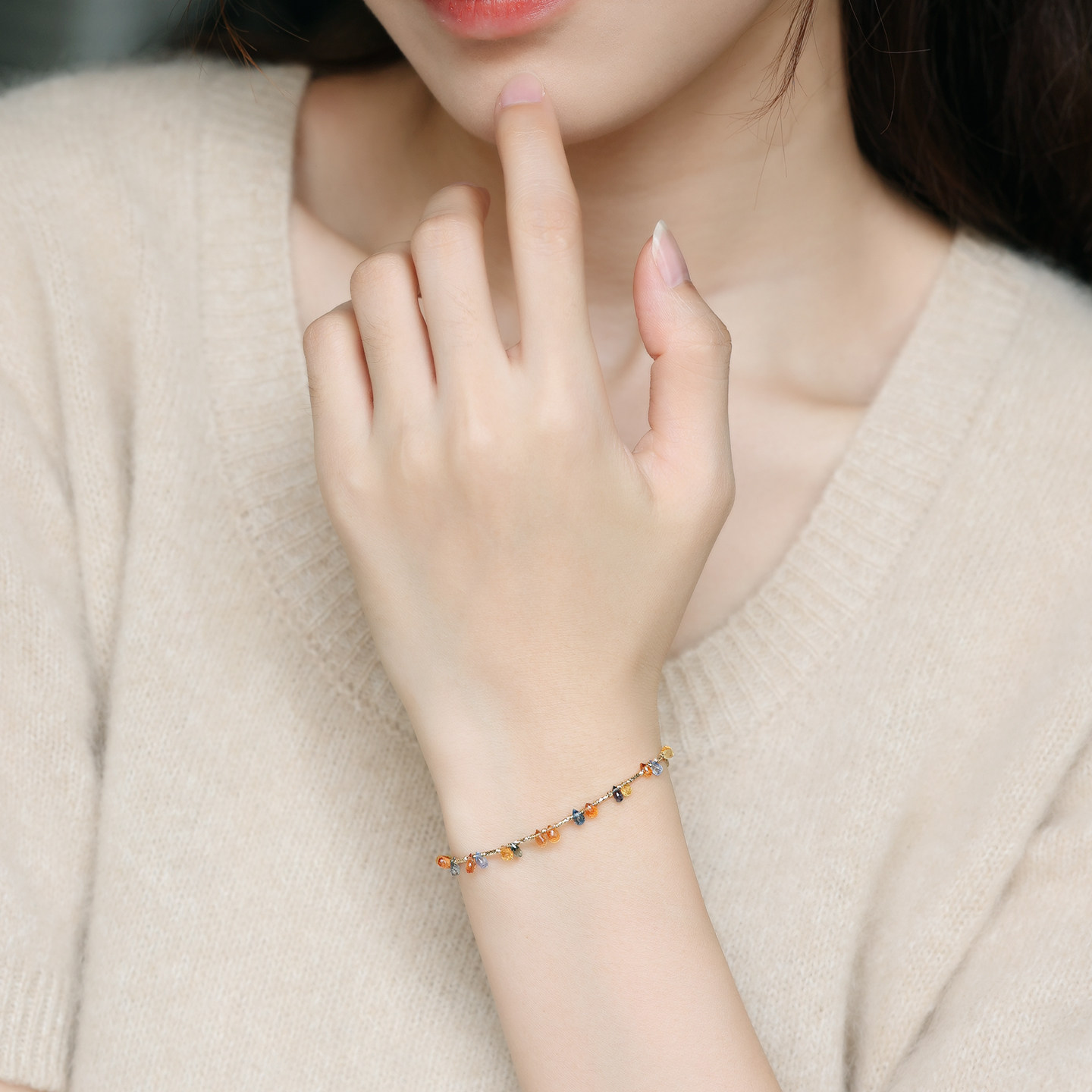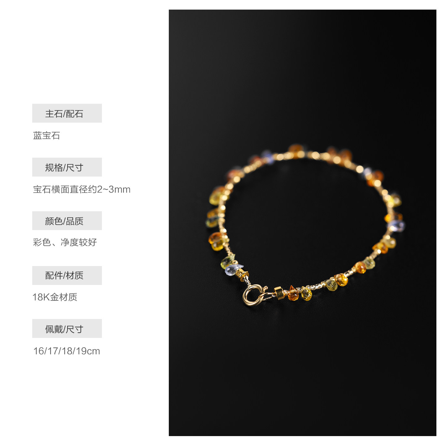 若华珠宝蓝精灵 满天星彩色蓝宝石手链女18K金彩宝手串手饰礼物
