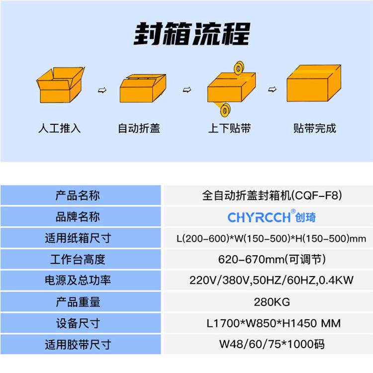 全自动胶带封箱机快递纸箱包装自动调节宽高折盖封箱打包机自动化