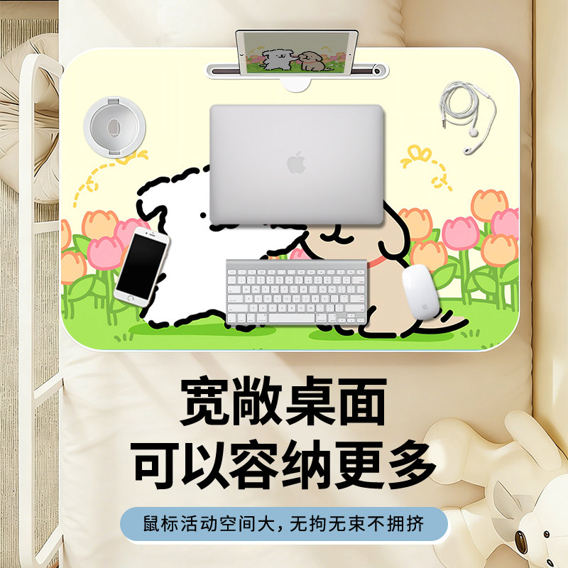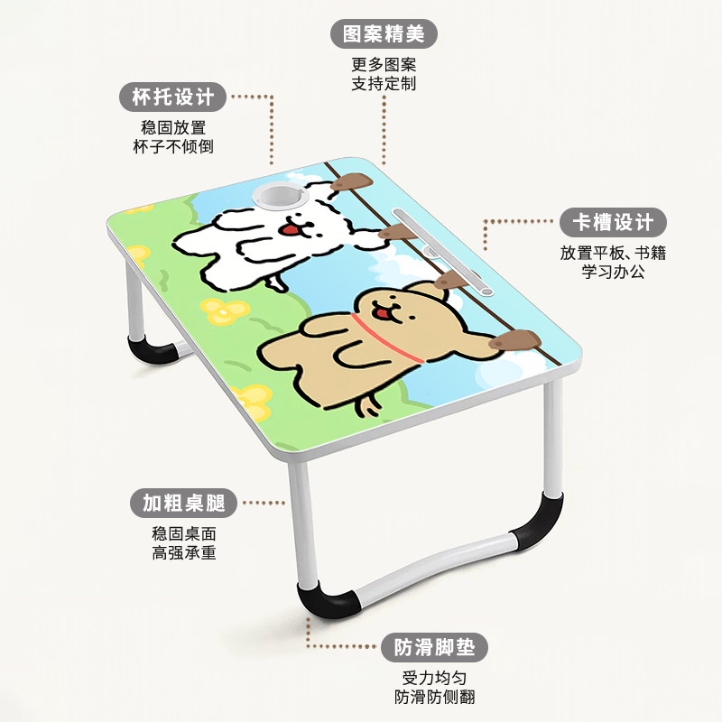 白色小狗床上小桌子宿舍床桌可折叠笔记本电脑桌学生学习写字桌子