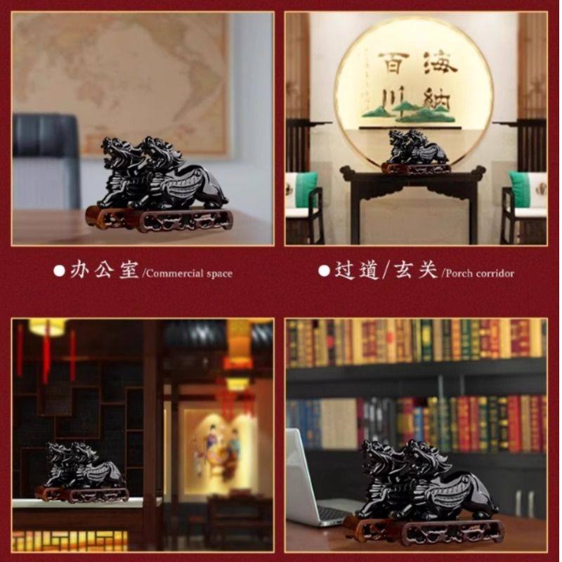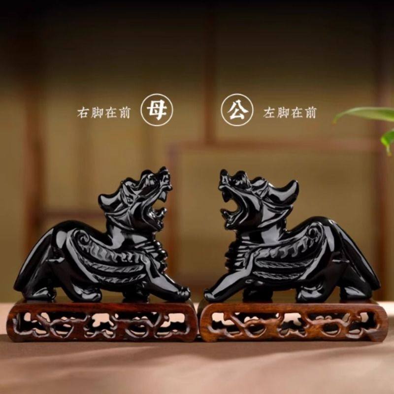 天然黑曜石貔貅摆件玉石客厅装饰办公室桌面开店开业礼物一对公母