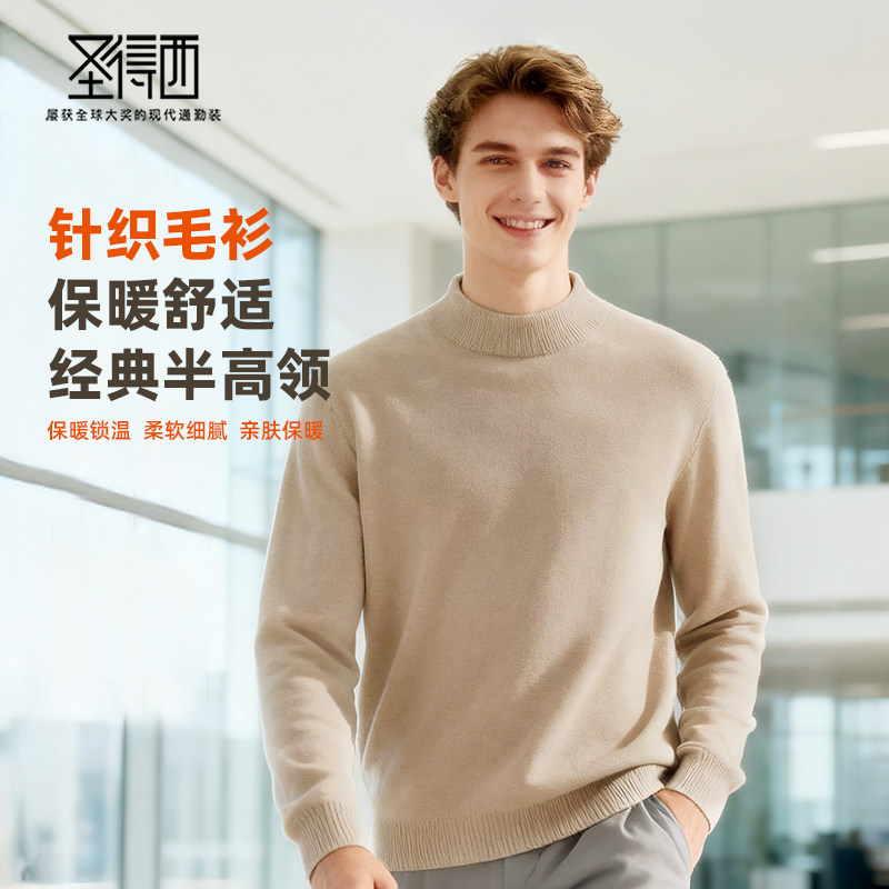 圣得西男士半高领套头纯色内搭上衣2025冬季新款休闲百搭打底毛衫