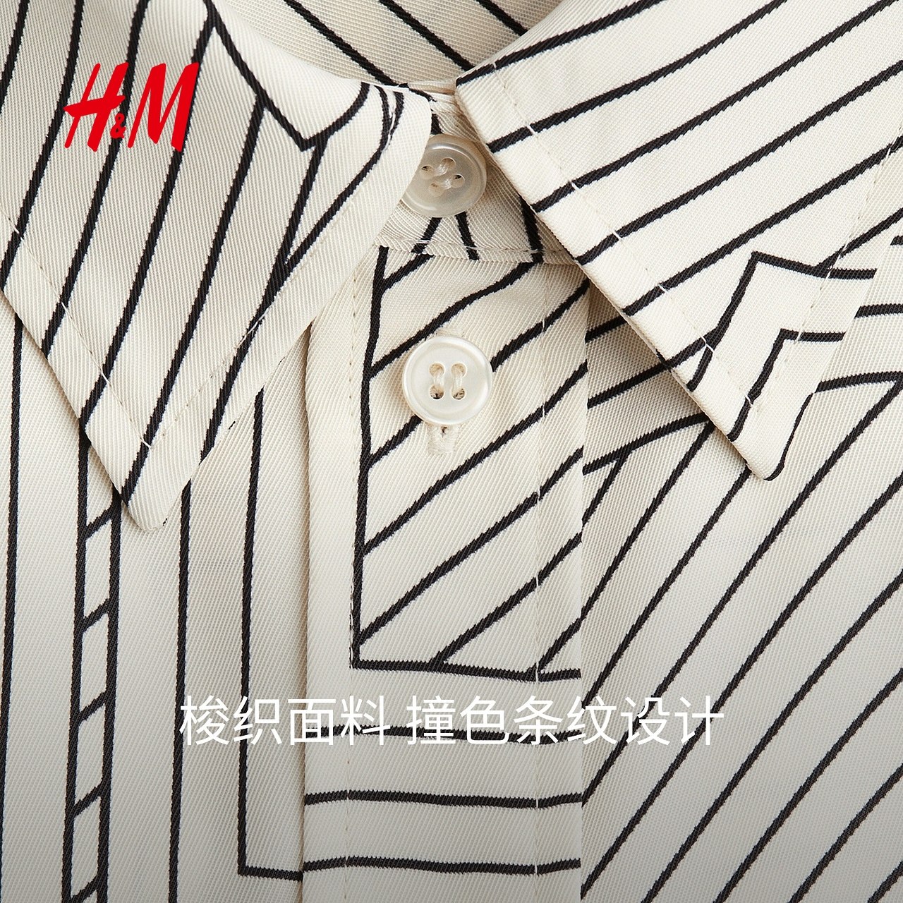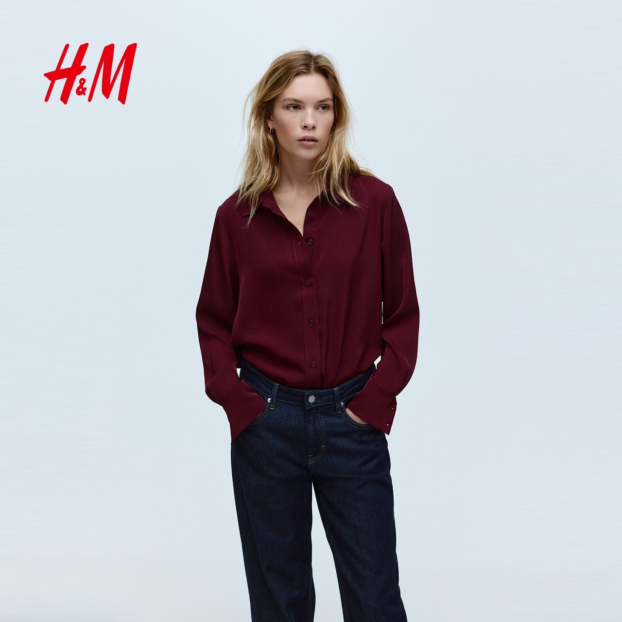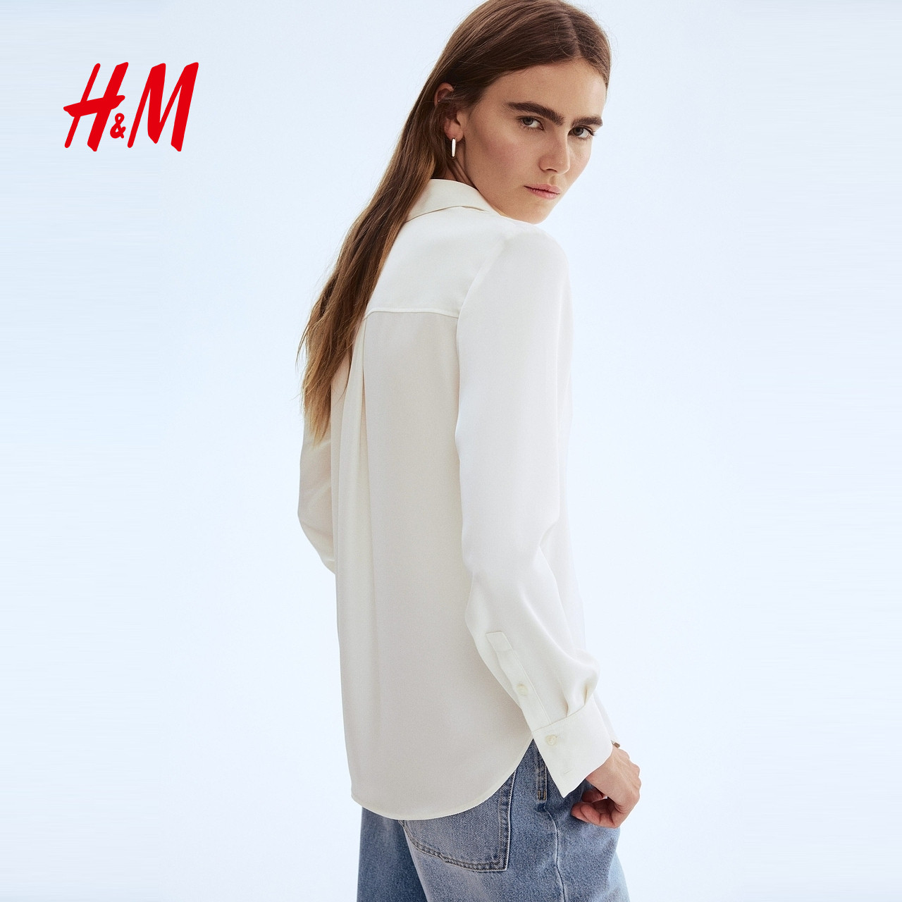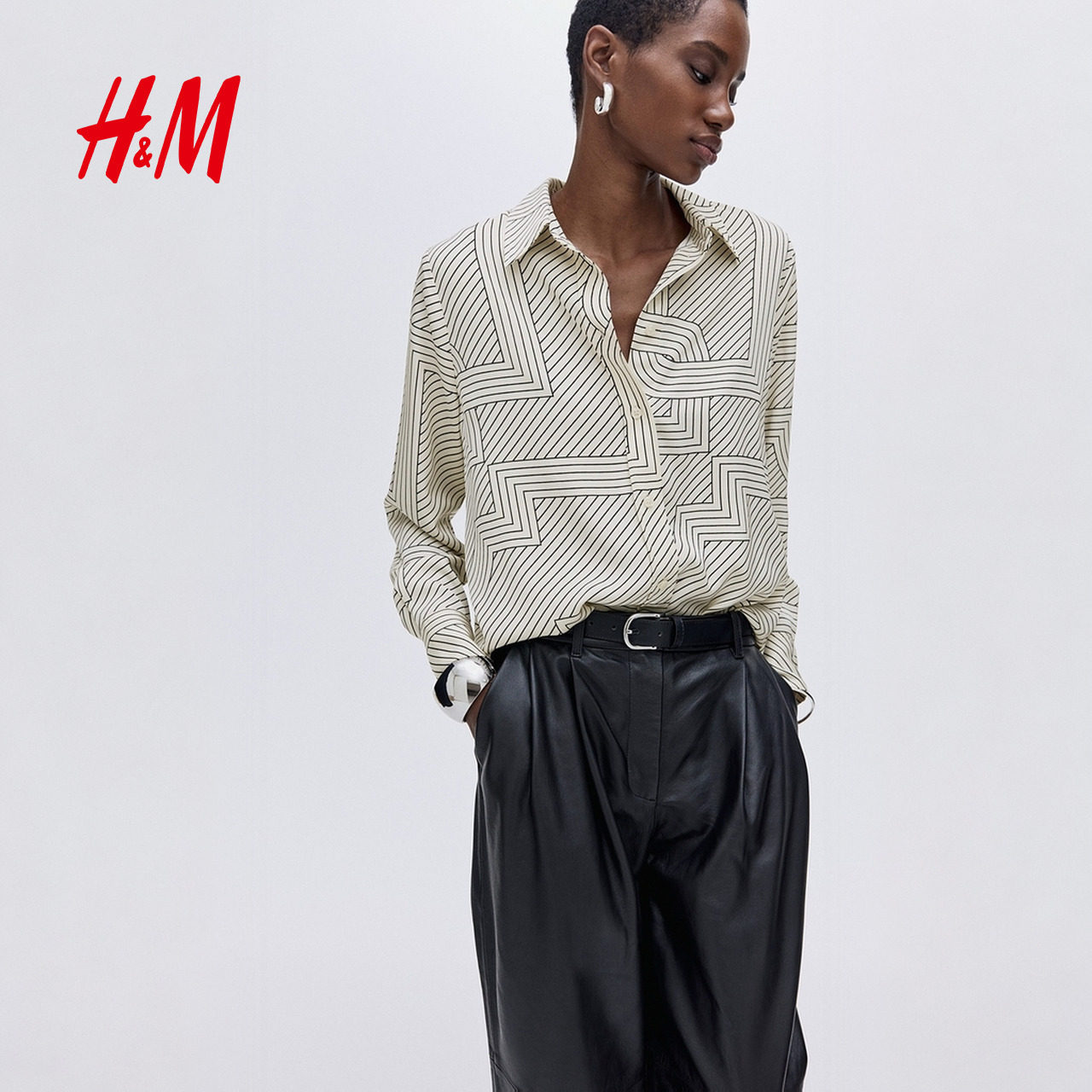 HM女装衬衫2025冬季新款翻折领宽松法式气质通勤打底衬衣1220978