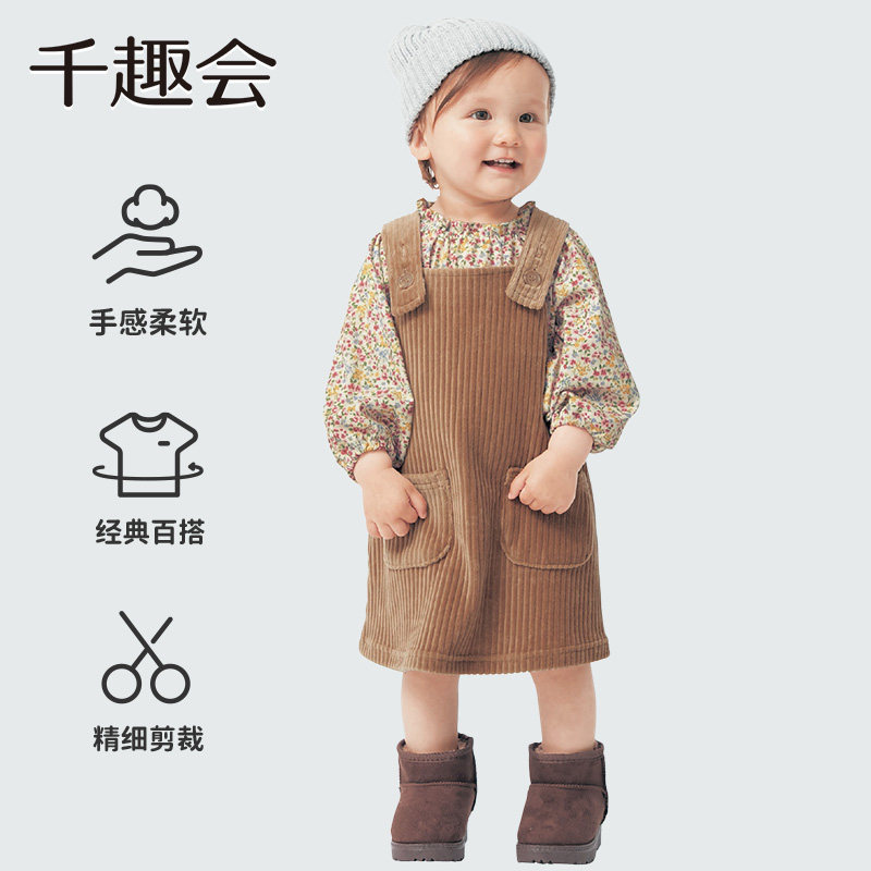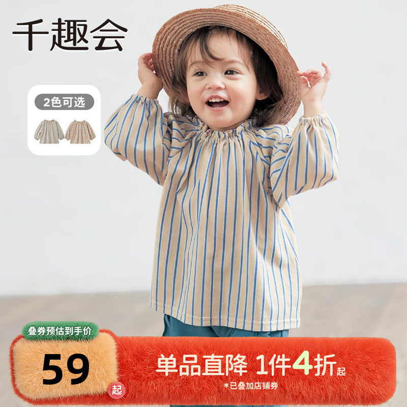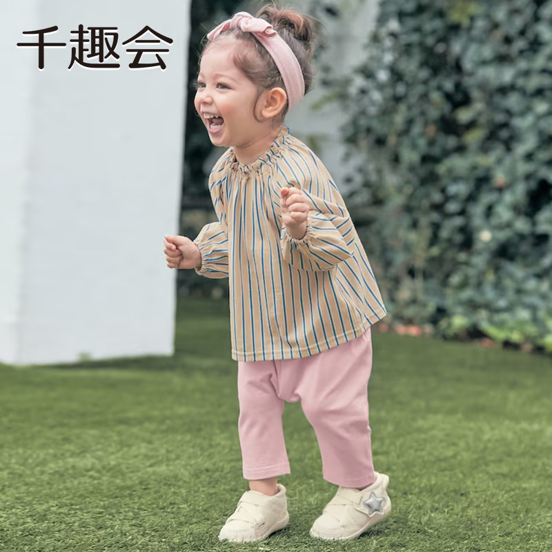 千趣会童装25春秋款女童宝宝半高木耳领满印全棉长袖套头衫T恤