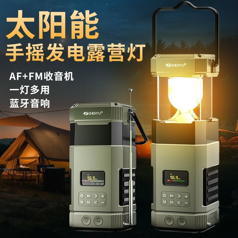 太阳能手摇发电收音机应急手电筒强光超亮多功能救援野外生存装备