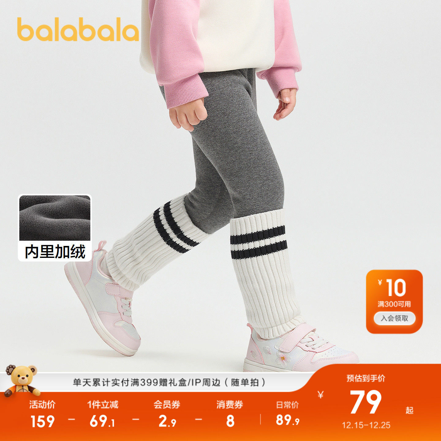 【balaOne】巴拉巴拉童装儿童加绒打底裤子女童2025秋冬新款拼接