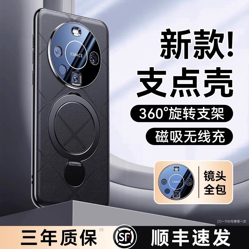 [顺丰现货]适用华为mate60pro手机壳新款旋转支架Mate60真皮保护套mt60镜头全包防摔Pro+磁吸支点男士高级感