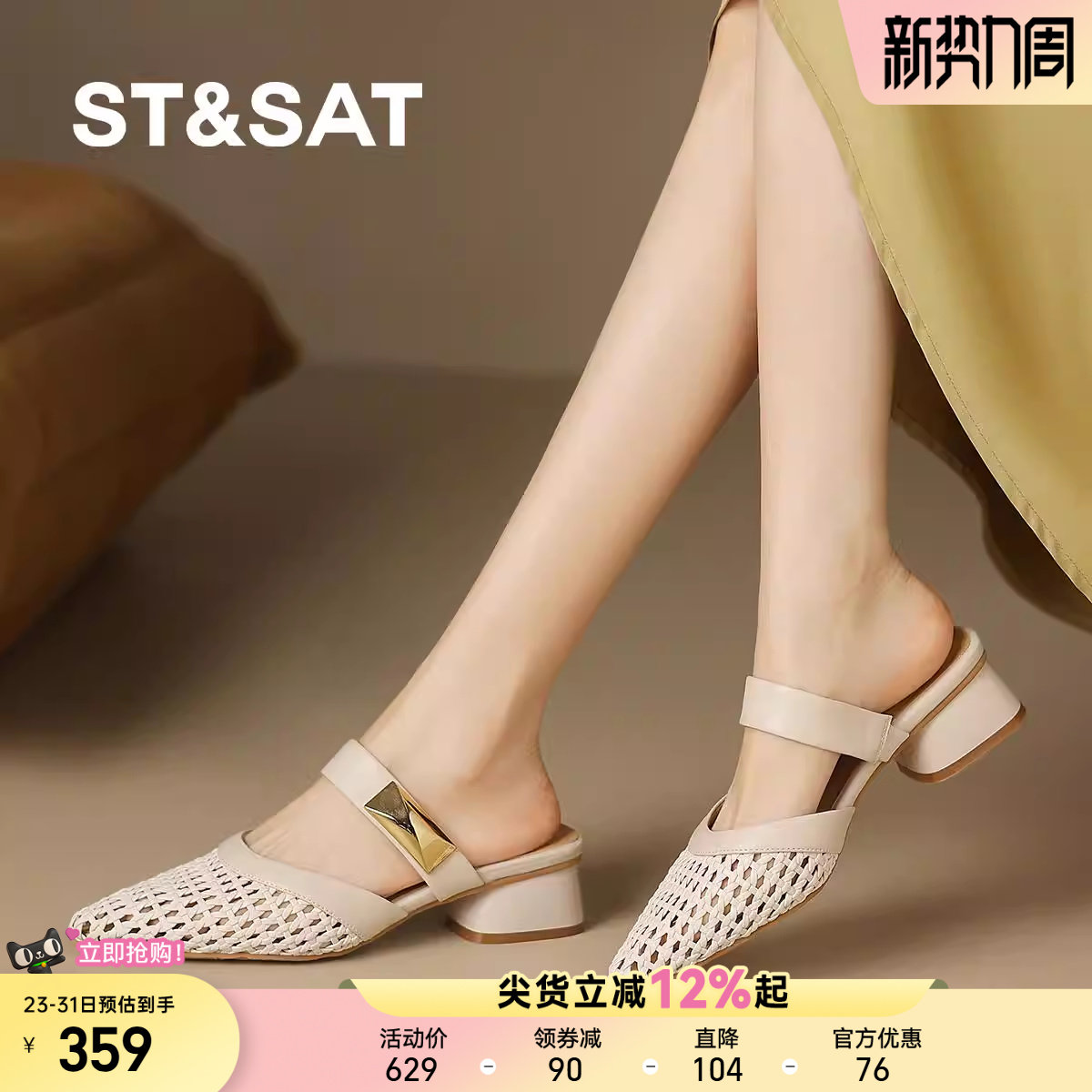 星期六气质尖头编织小香风一字带包头半拖女夏季外穿玛丽珍凉鞋