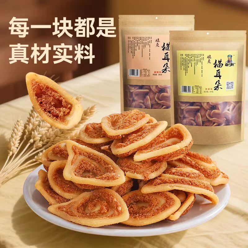 卧龙猫耳朵零食大礼包童年怀旧休闲食品解馋小吃猫耳酥薄脆饼干