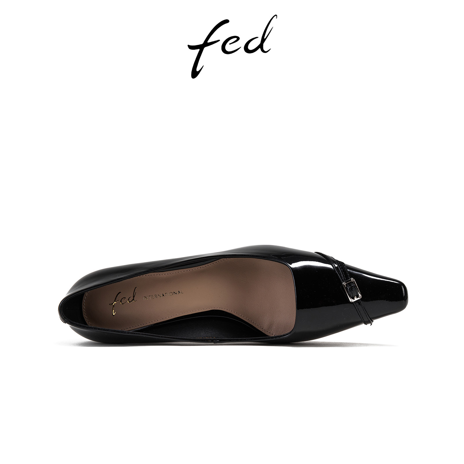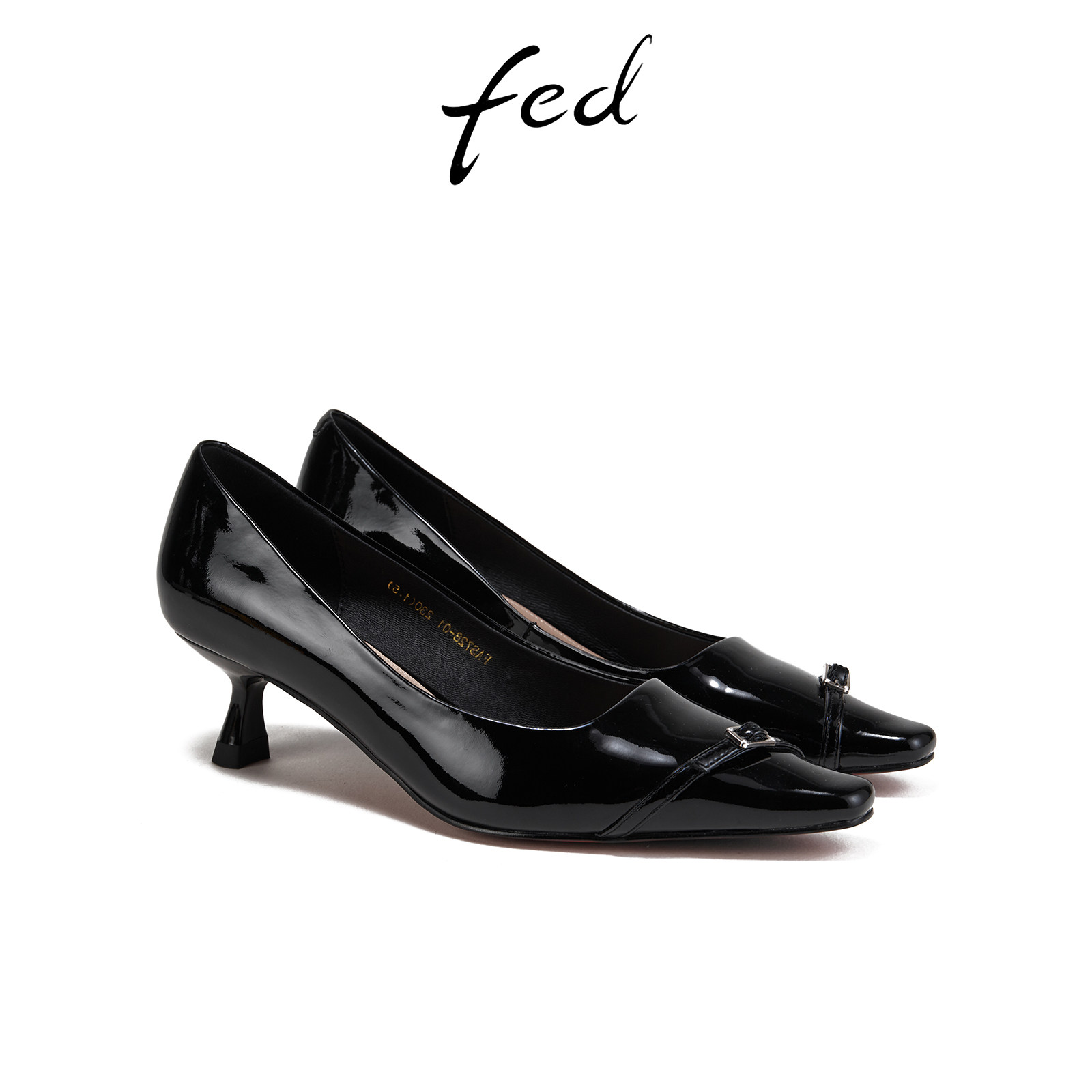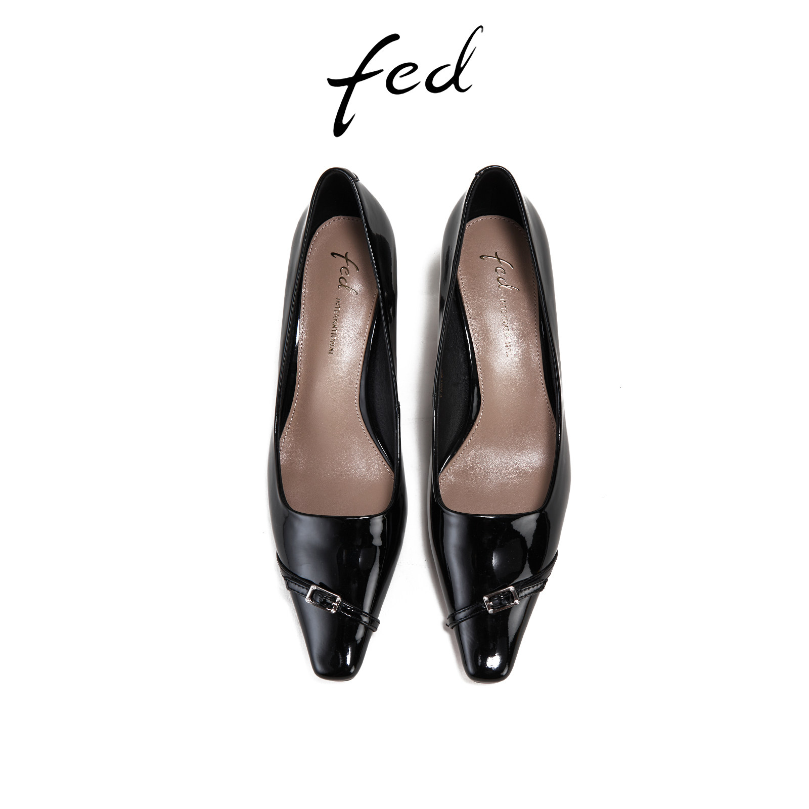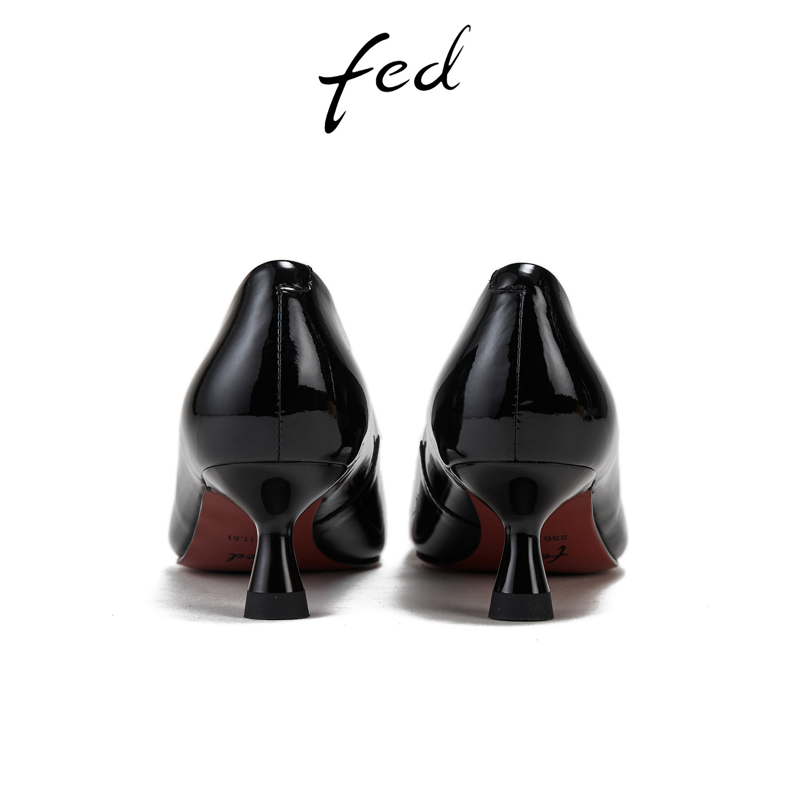 fed黑色高跟鞋春季新款女鞋小猫跟单鞋职业通勤鞋女款S0306-ZC728