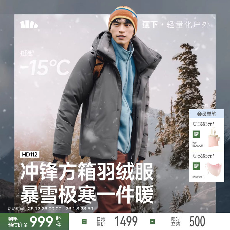 蕉下方箱羽绒服男款冬季加厚保暖户外防风防水可机洗长款棉服外套