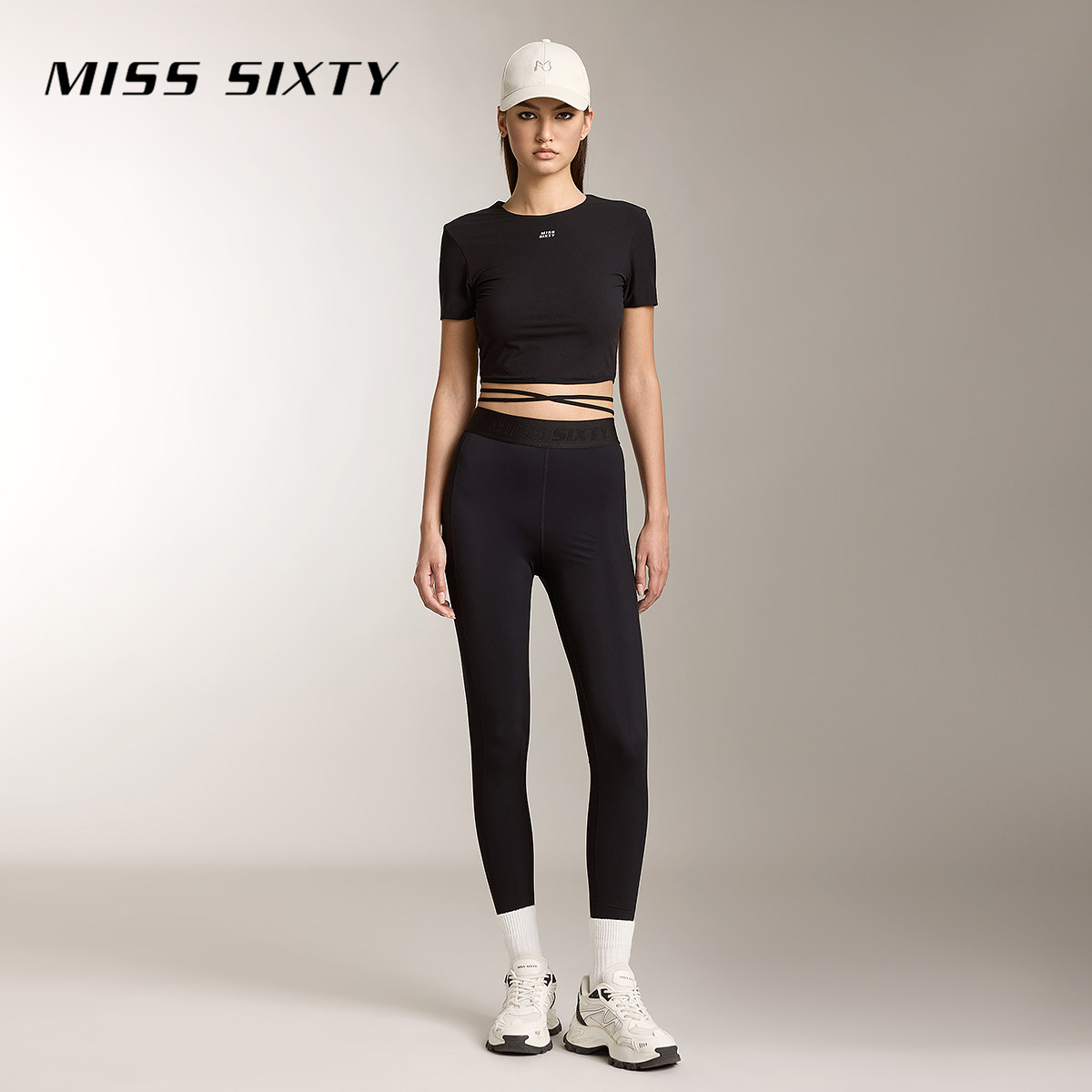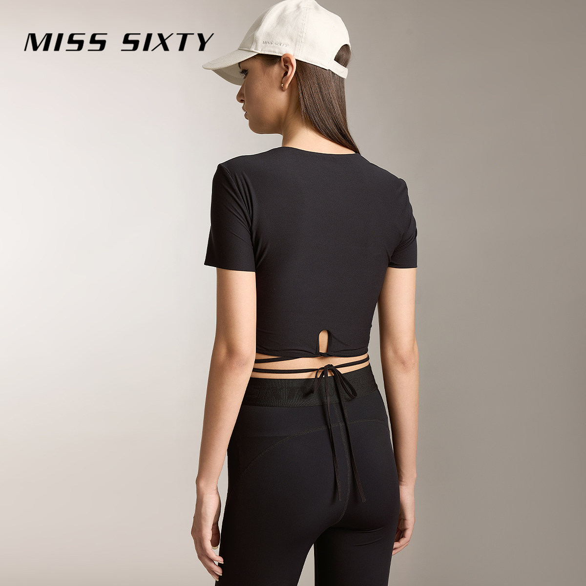 【运动系列】Miss Sixty短袖T恤圆领系带印花休闲短款健身