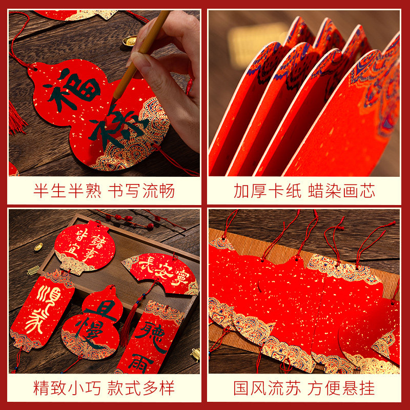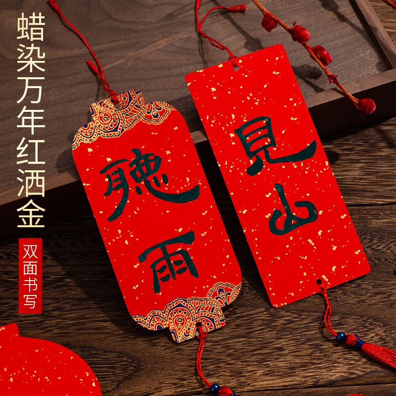 2026年马年新款迷你福卡挂件万年红蜡染宣纸春联手写卡纸福字红纸对联专用空白书法作品喜庆红色书签卡片挂饰