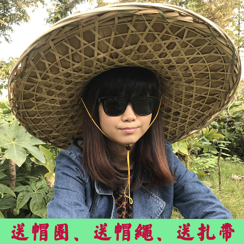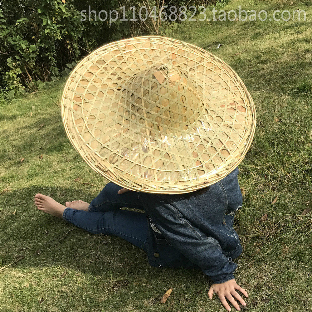 竹编斗笠大号尖顶遮阳草帽子舞蹈装饰大沿钓鱼纯手工编织防水古风