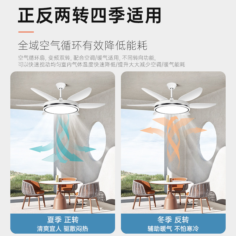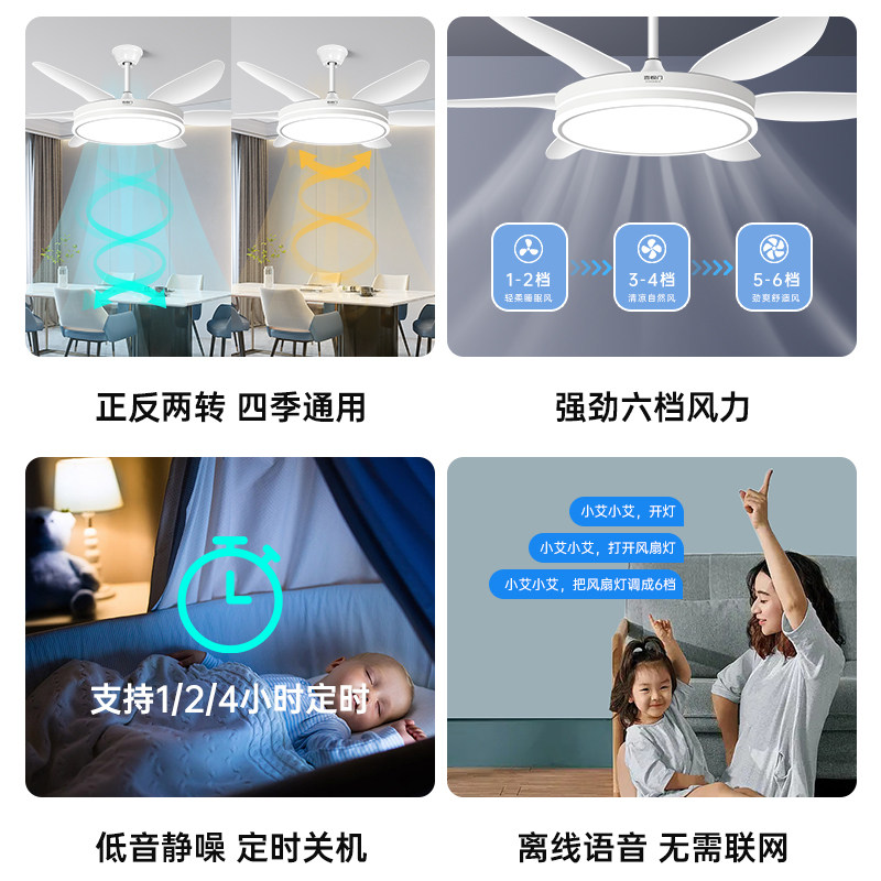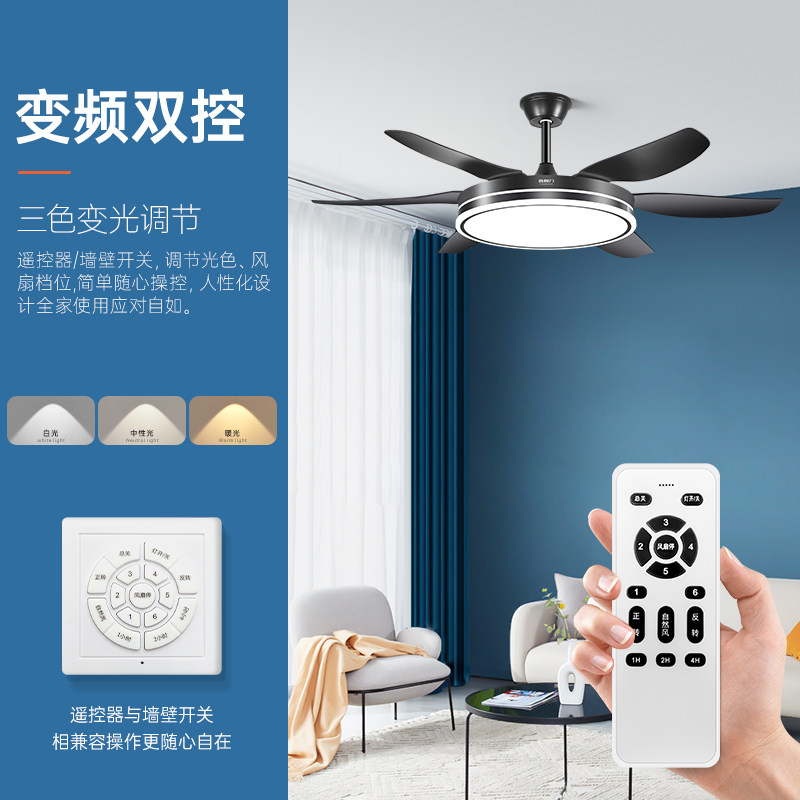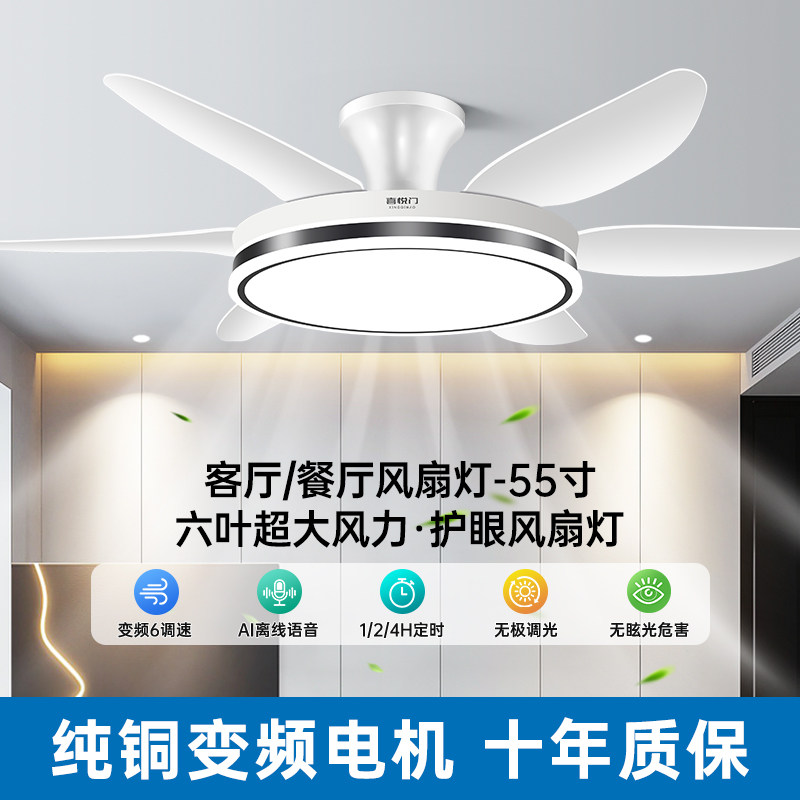 吸顶风扇灯家用客厅餐厅吊扇变频智能带电风扇吊灯一体55寸灯