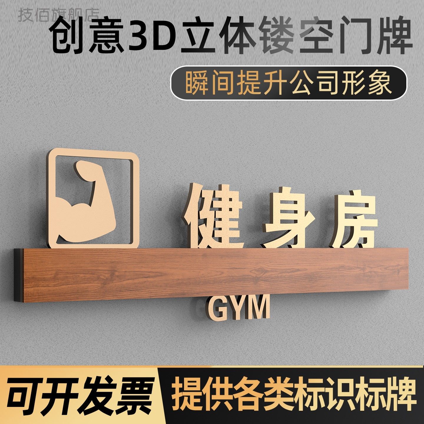 三层加厚健身房瑜伽教室门牌定制亚克力标识牌高档普拉提教练私教美体室淋浴室洗澡更衣室指示牌创意3d立体
