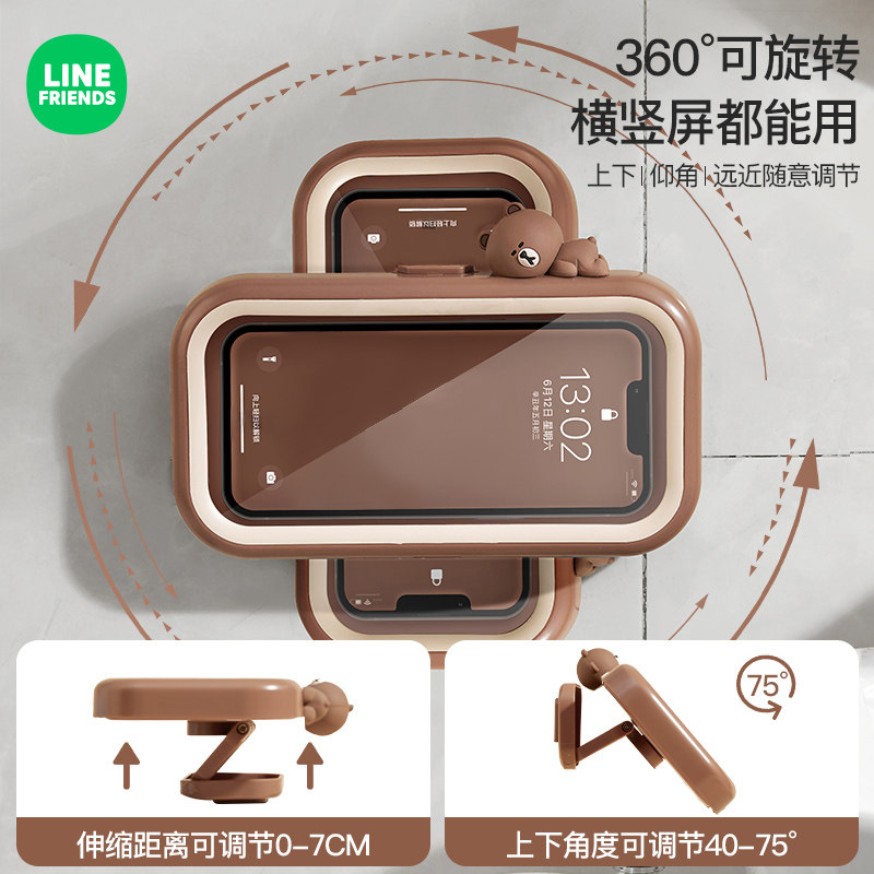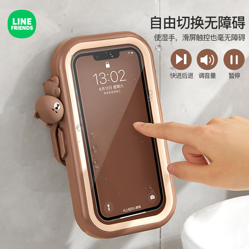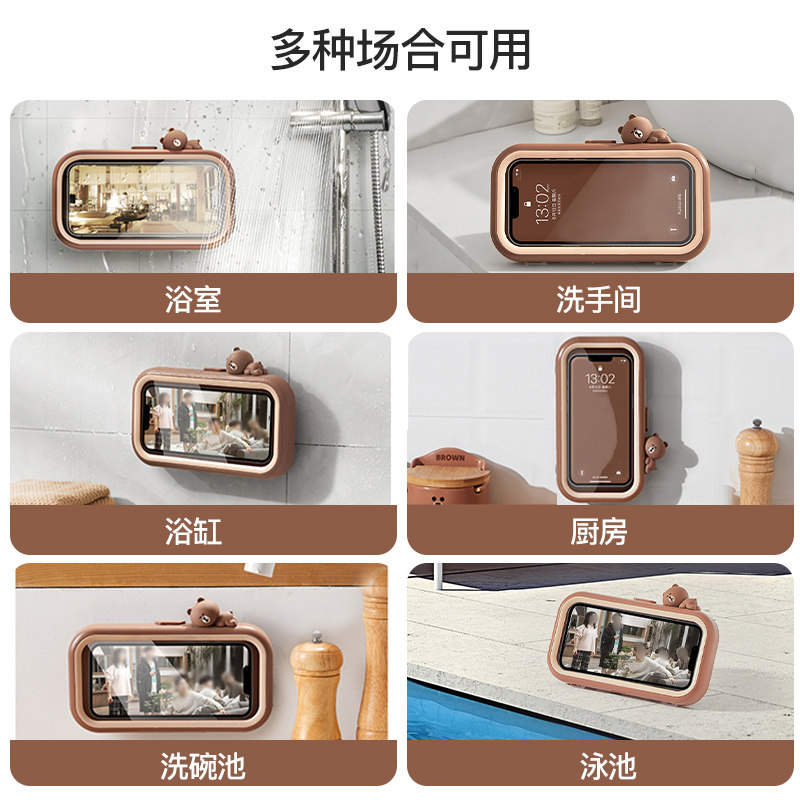 浴室手机架防水盒懒人支架卫生间淋浴房专用洗澡看电视追剧神器放厨房可旋转触屏免打孔厕所挂墙上置物手机盒