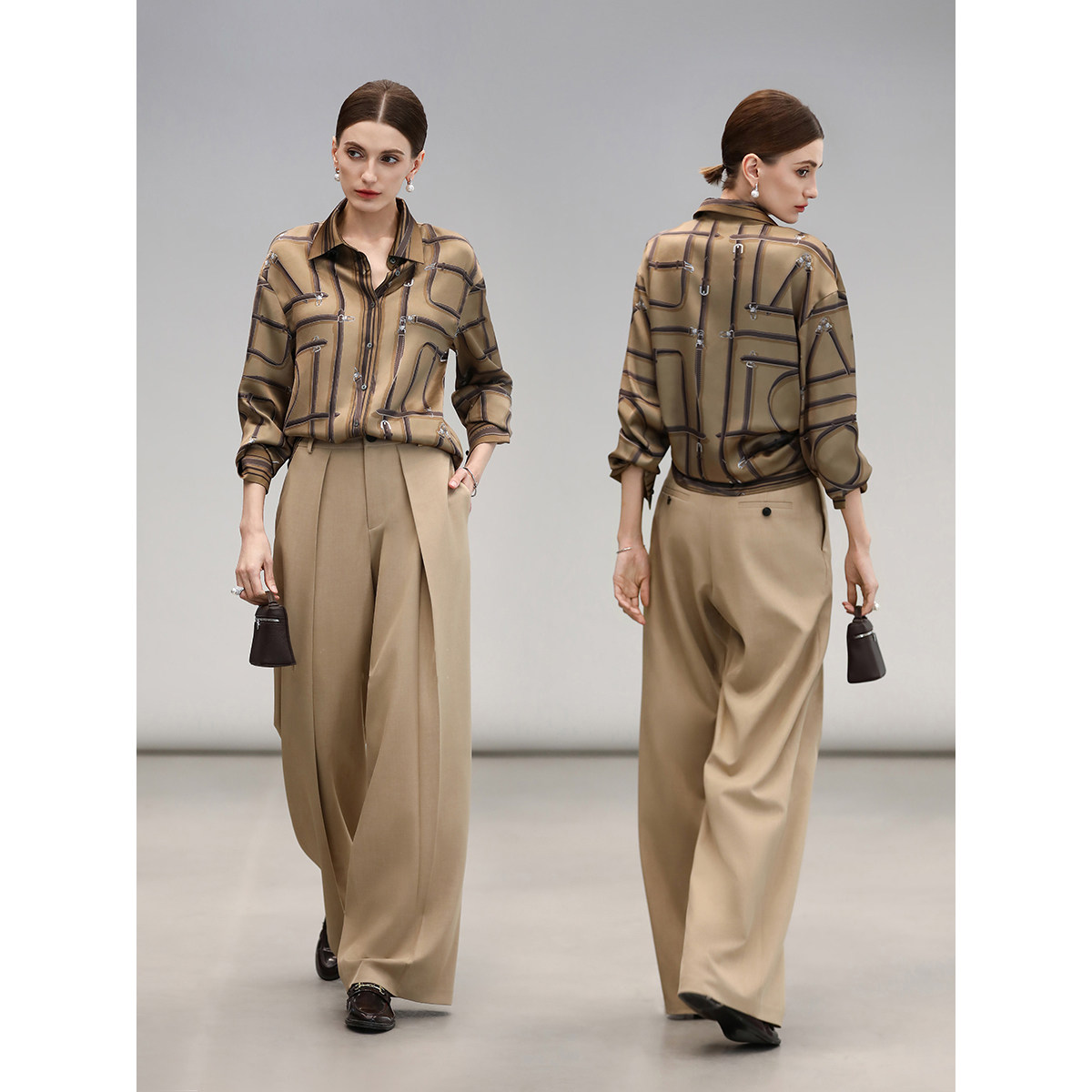 定位印花重磅缎面衬衫