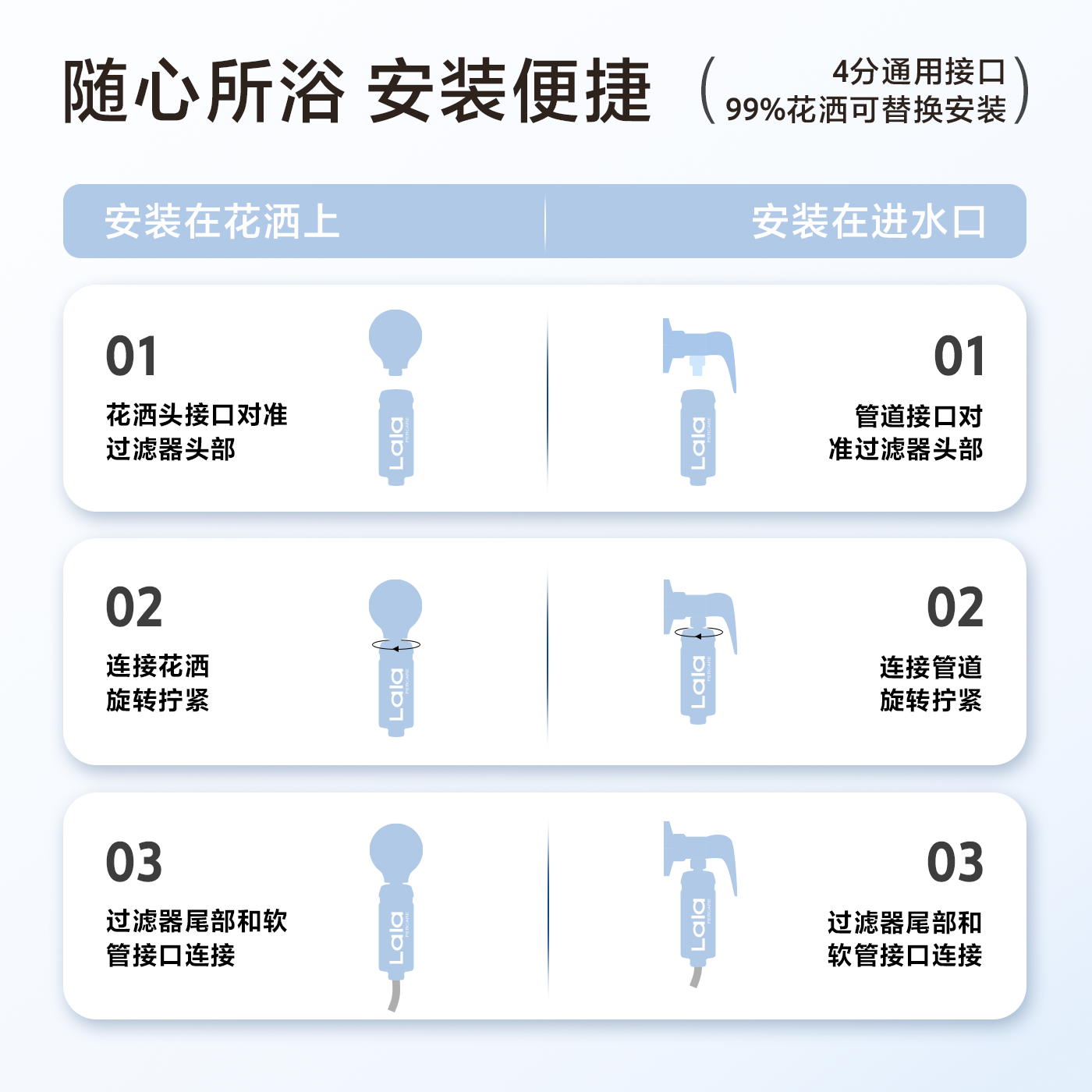 Lalapercare洗澡养肤花洒过滤器净化家用除氯2瓶+太空环增压喷头