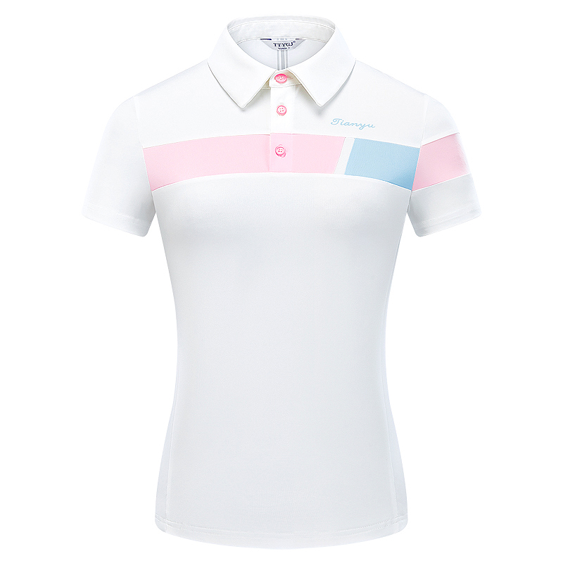 高尔夫球服装 女士短袖POLO衫撞色T恤修身速干弹力休闲运动上衣服