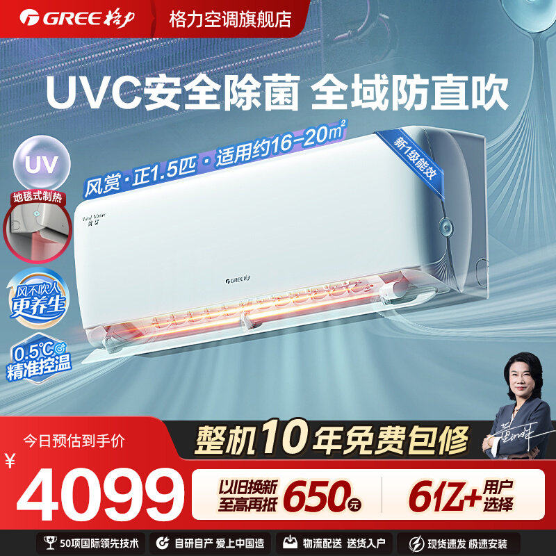 【Gree/格力官方】新一级能效变频冷暖正1.5匹除菌空调挂机风赏