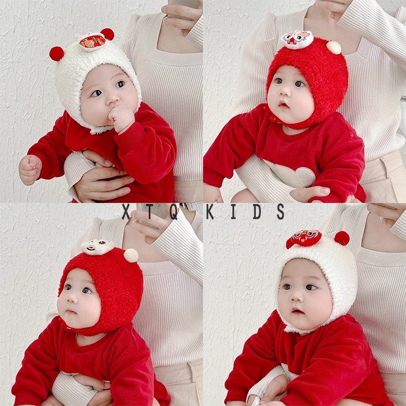 婴儿宝宝帽子秋冬季小月龄可爱超萌保暖男女护耳毛绒套头帽纯色潮