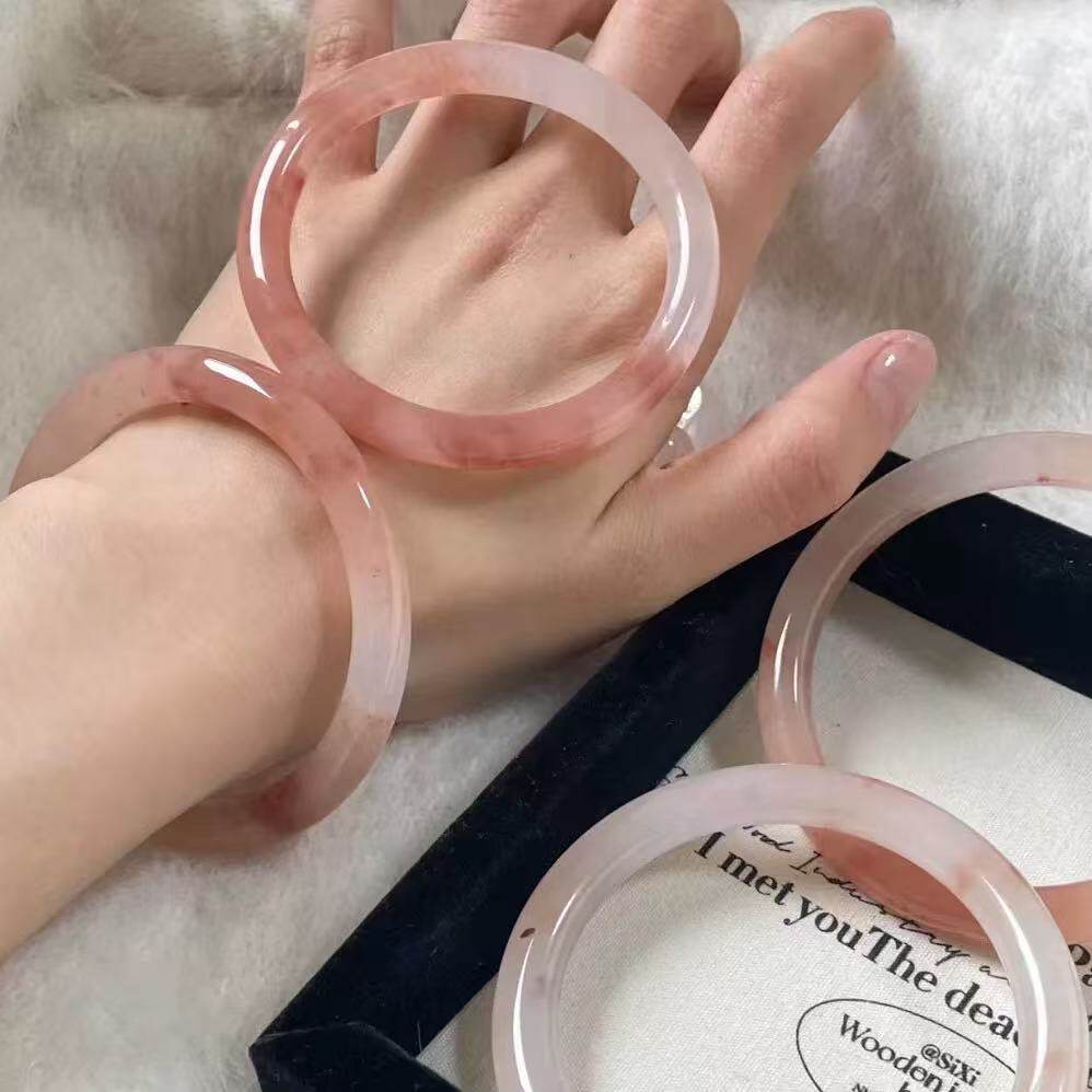 桃花酿手镯玉石平替金丝粉色圆条镯子女樱花粉玉手镯招桃花手饰