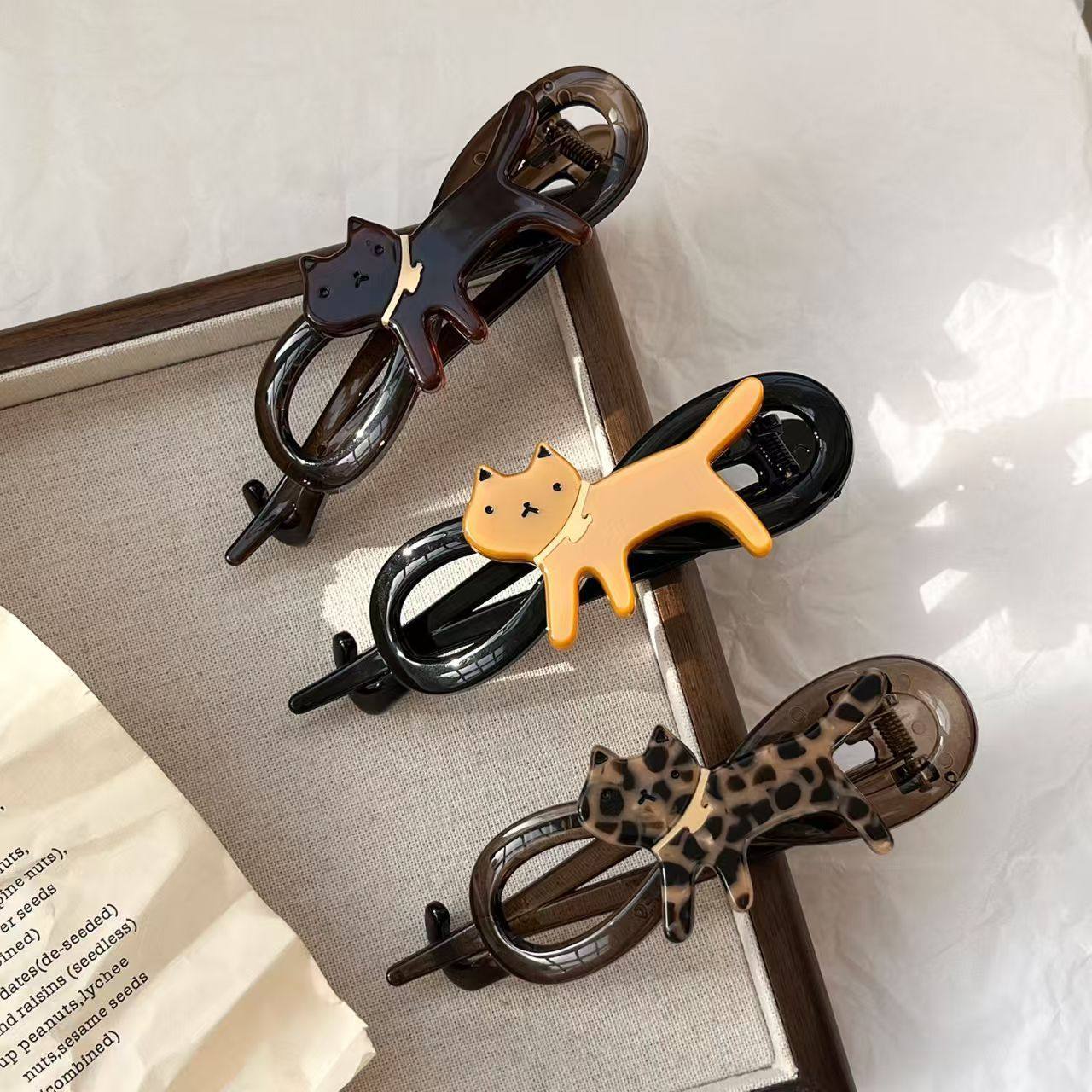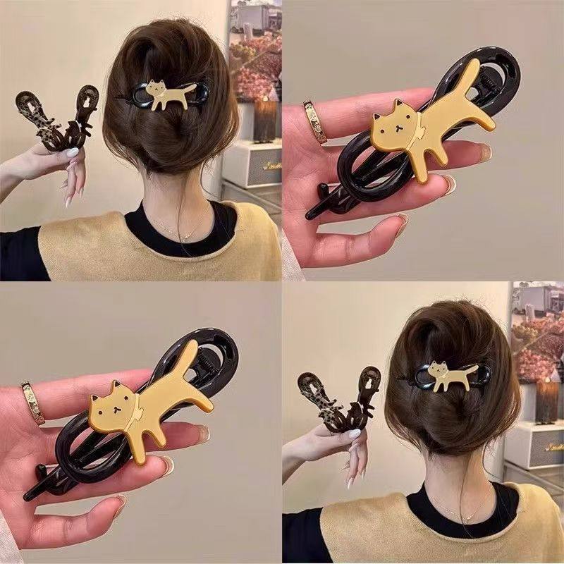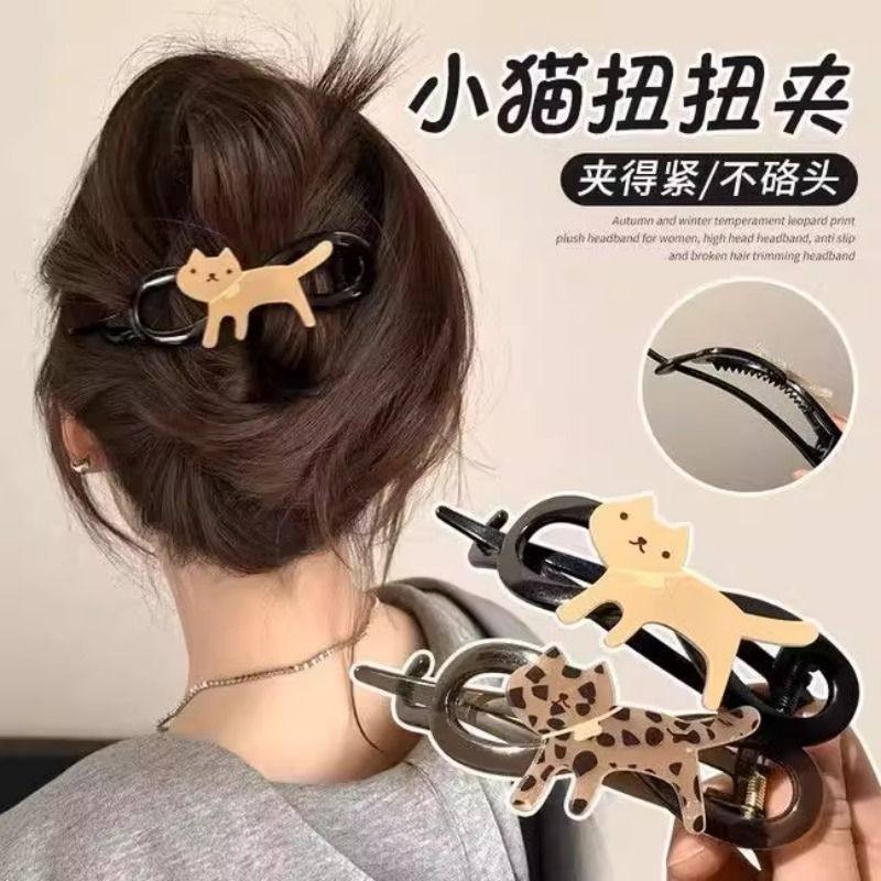 2025新款高级感豹纹猫咪发夹女后脑勺大号盘发扭扭抓夹一字发卡子