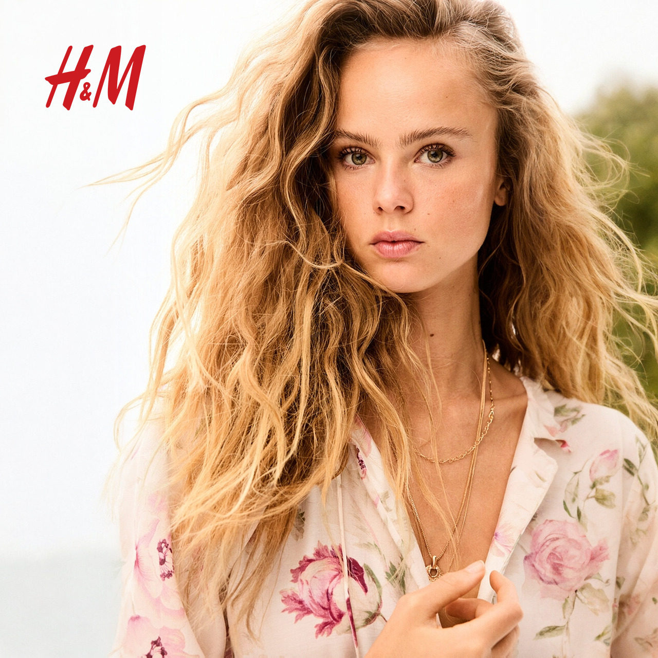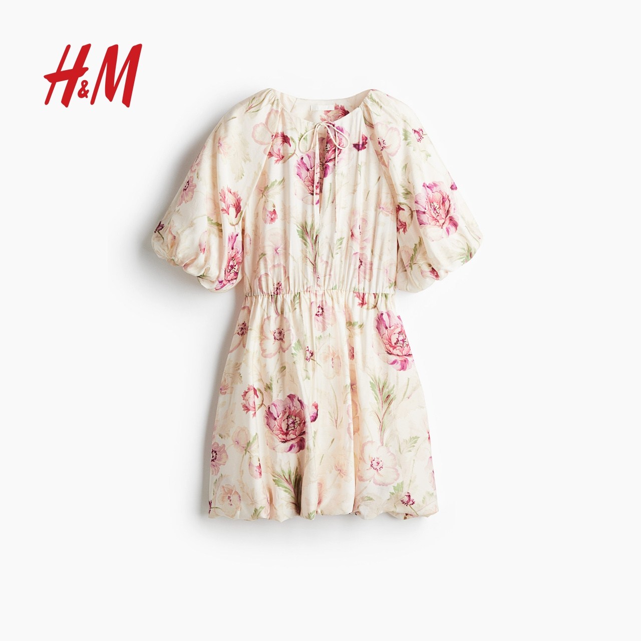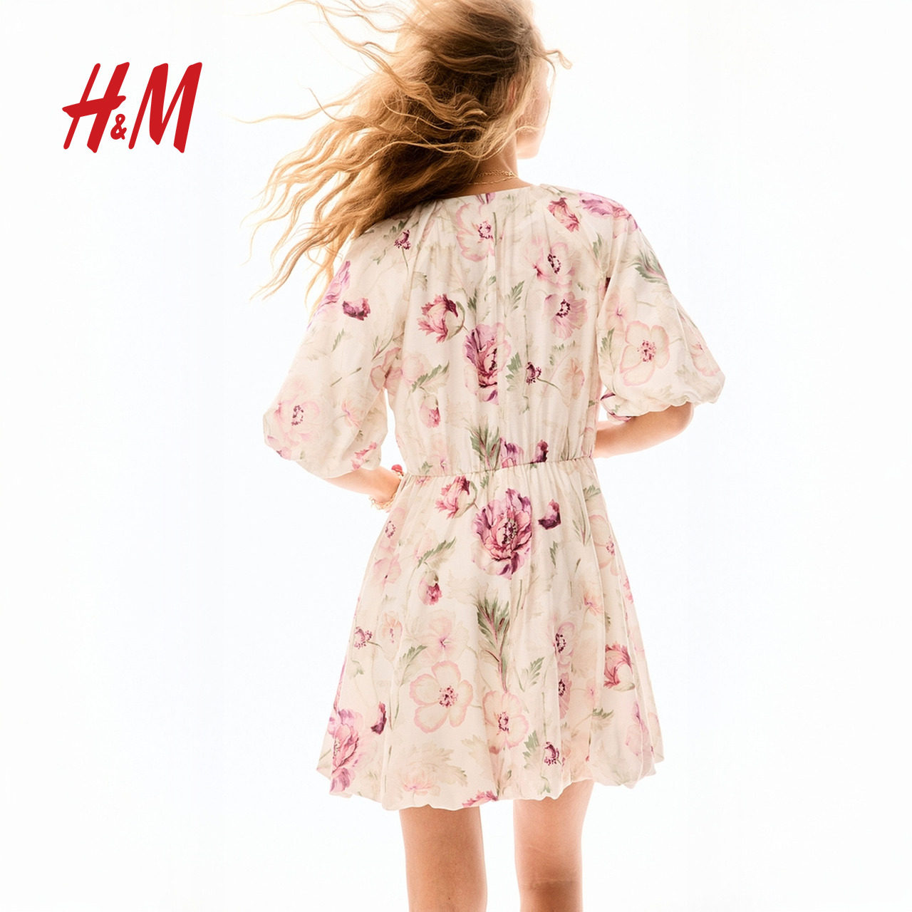HM女装花卉连衣裙2025冬季新款法式泡泡下摆喇叭连身裙1289433