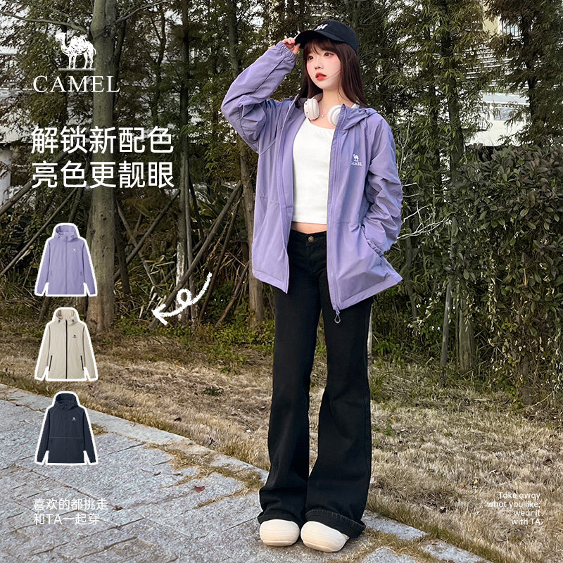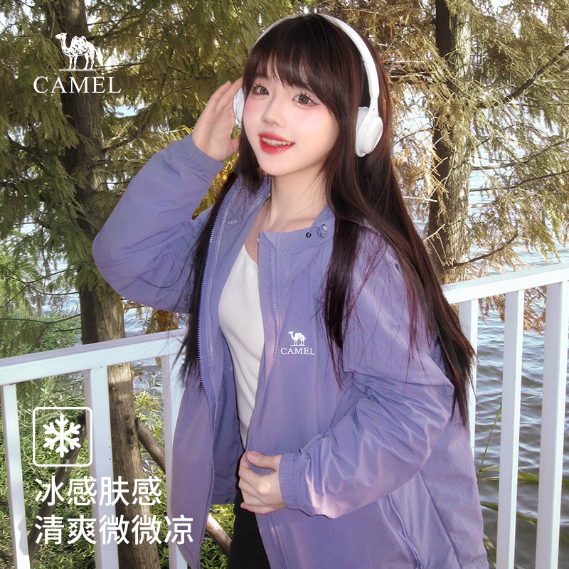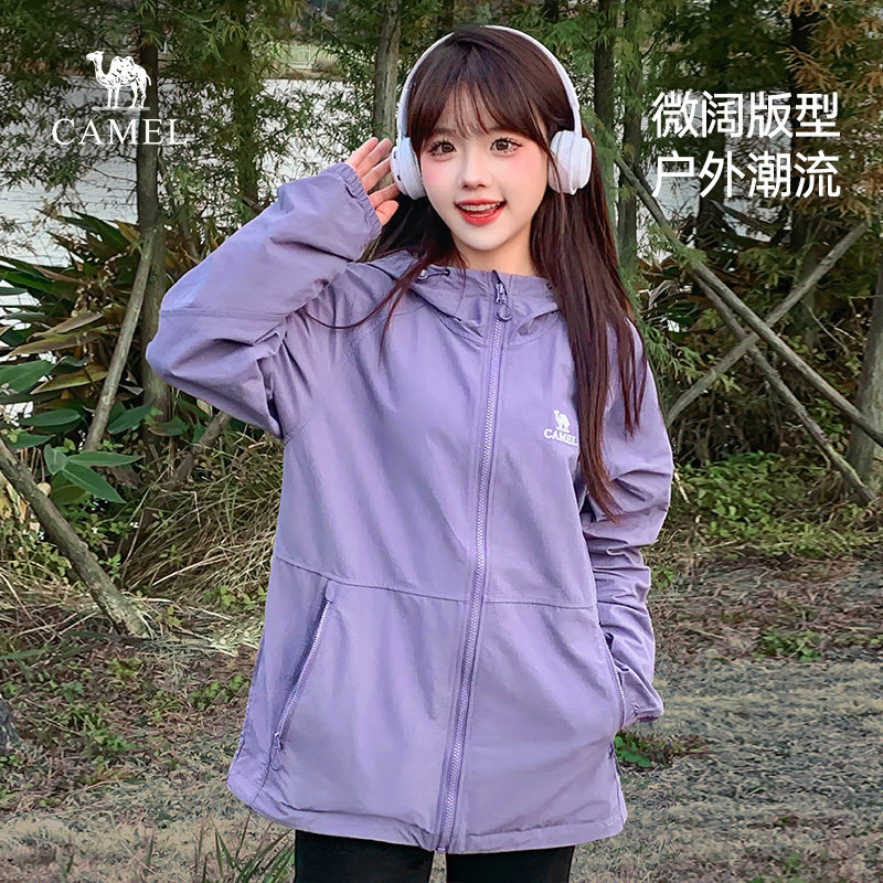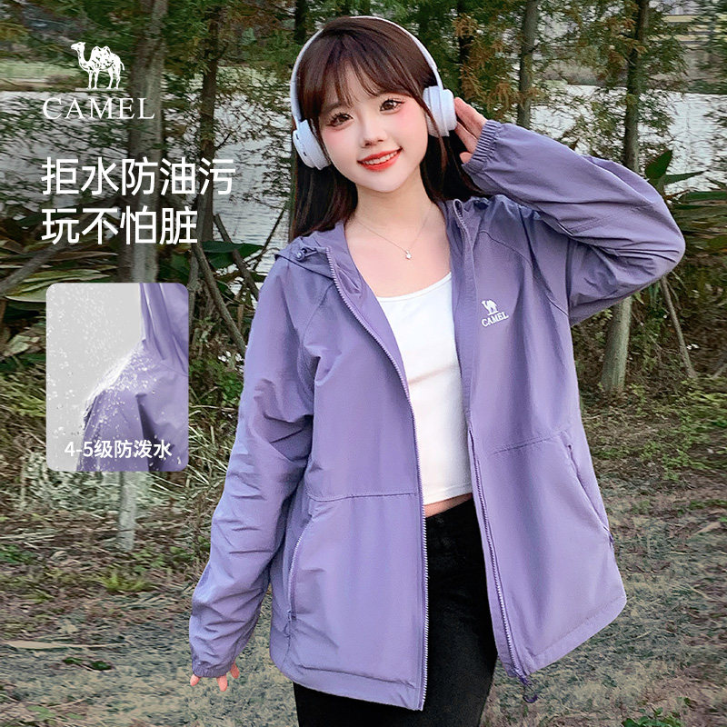 骆驼女装夹克外套2025新款春夏潮流登山服运动连帽休闲透气外套女