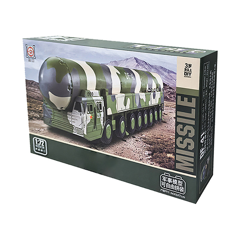 旭嘉1/72中国东风-41洲际导弹发射车免胶预上色拼装模型军事玩具