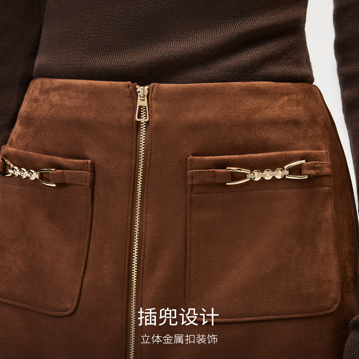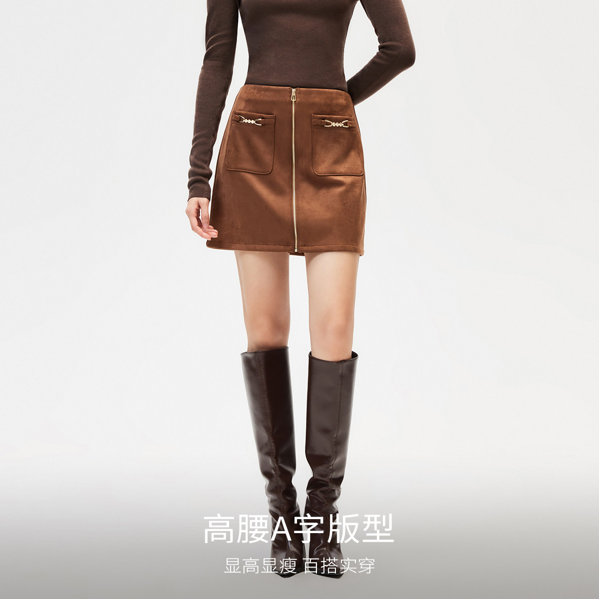 Vero Moda奥莱半身裙秋冬新款绒面质感高腰A摆美拉德气质短裙流行