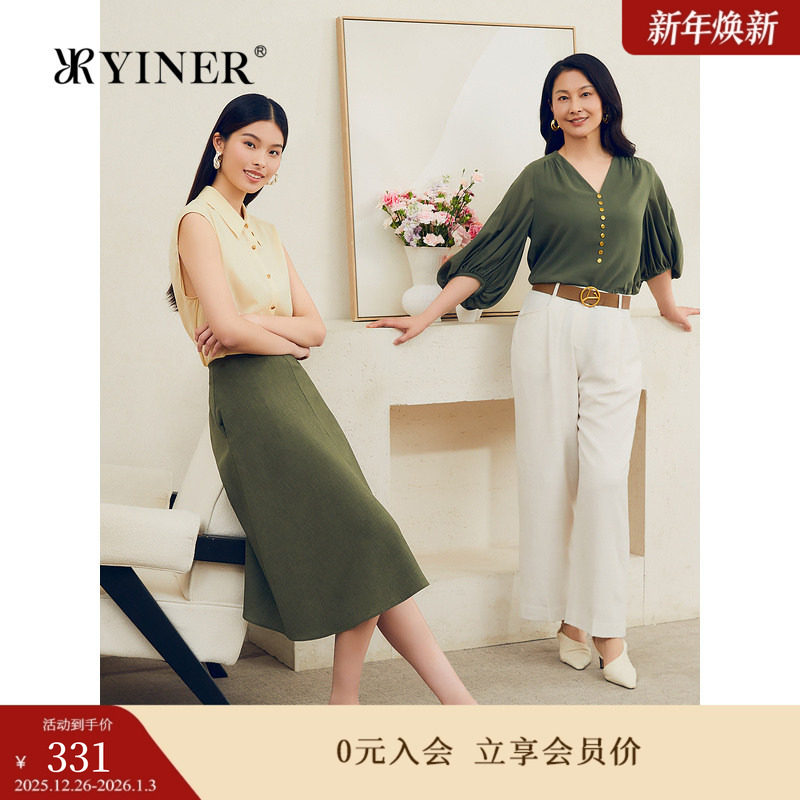 YINER音儿夏季女装法式优雅大地色圆舞曲裙子高腰A字半身裙