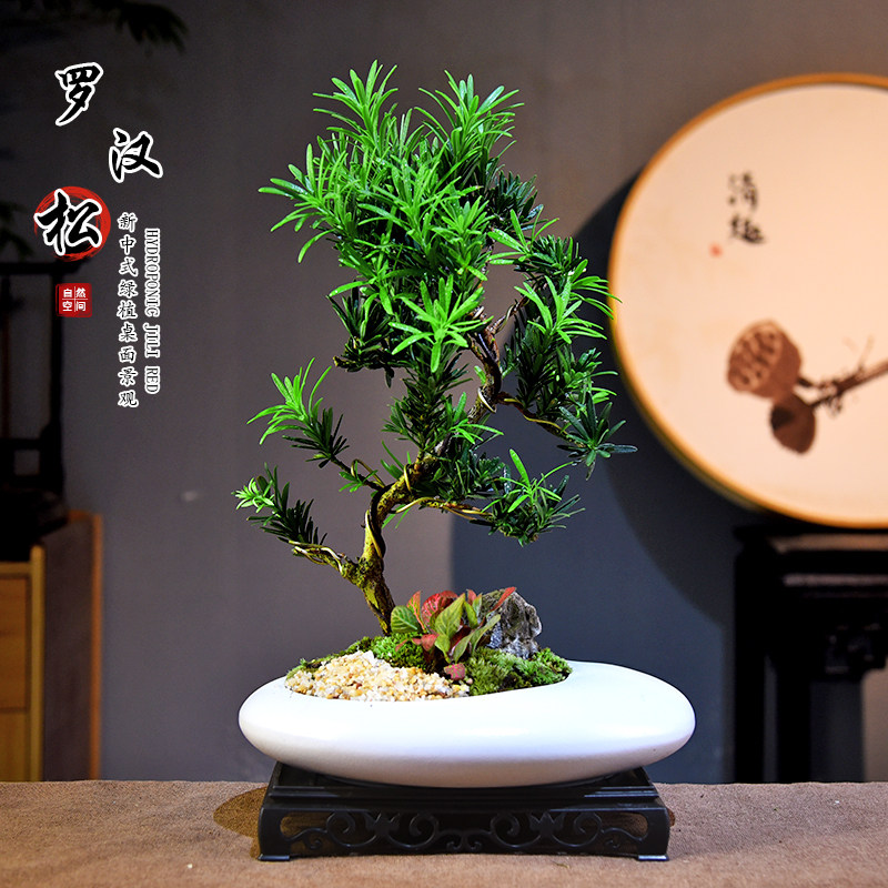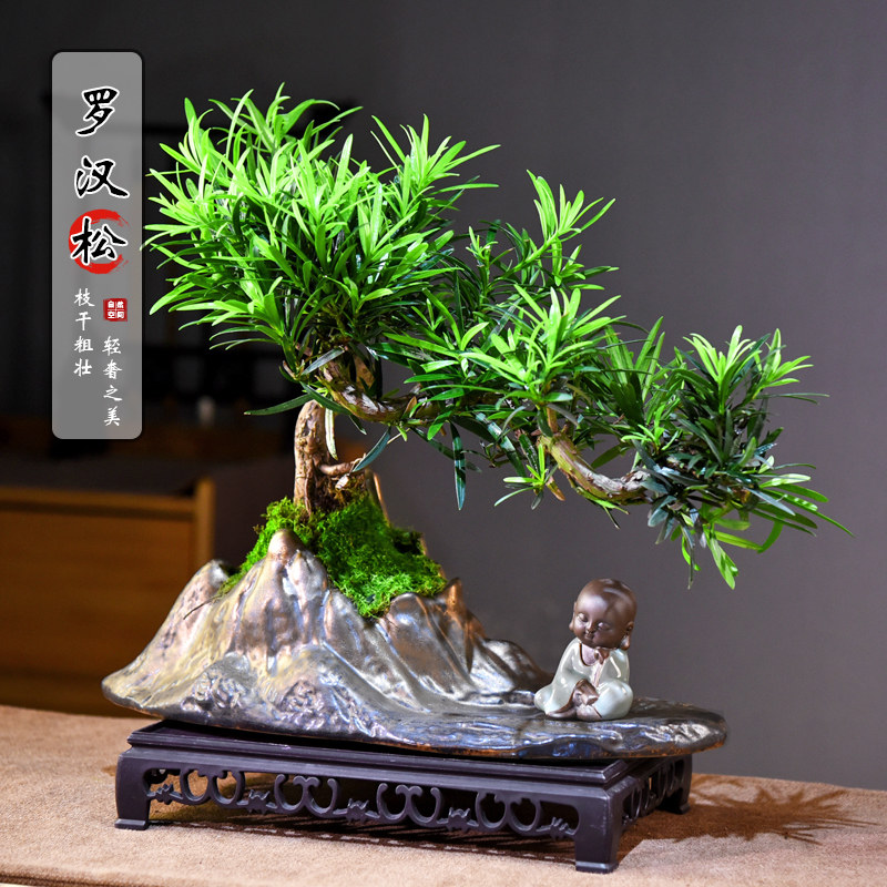 罗汉松盆景绿植中式造型绿植微景观植物好养送礼四季常青植物摆件